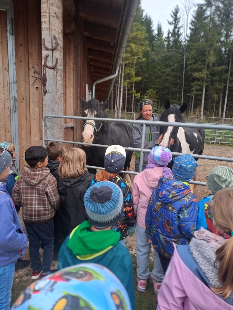 Am Dienstag, den 30. September, unternahmen die beiden ersten Klassen einen spannenden Ausflug zum Feldbauerhof der Familie Eder. Dort erwartete die Kinder ein erlebnisreicher Vormittag, bei dem sie das Leben auf einem Bauernhof kennenlernen durften.