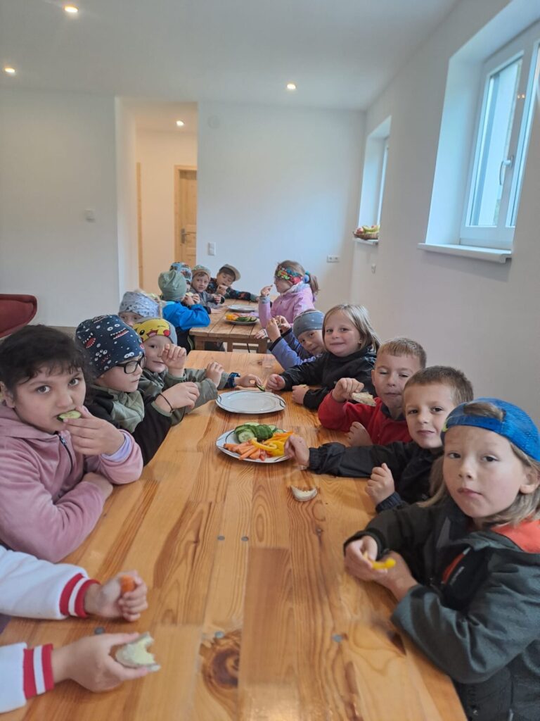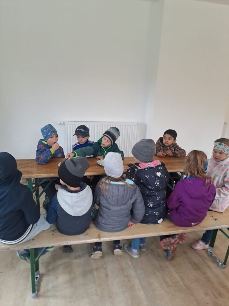 Nach so vielen Eindrücken freuten sich alle über eine köstliche Jause. Die Kinder wurden mit Butterbroten, frischem Gemüse und einem sehr guten Kuchen verwöhnt.