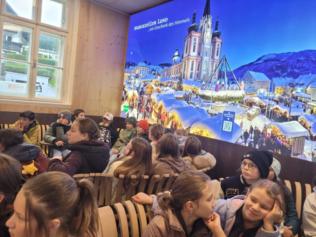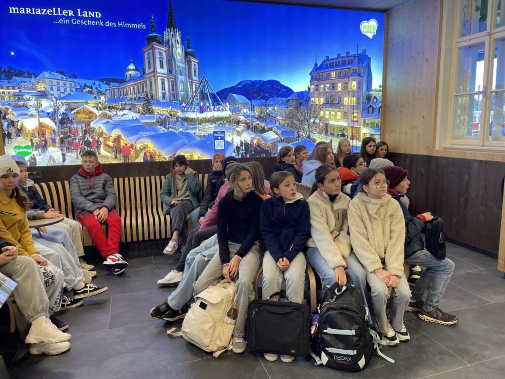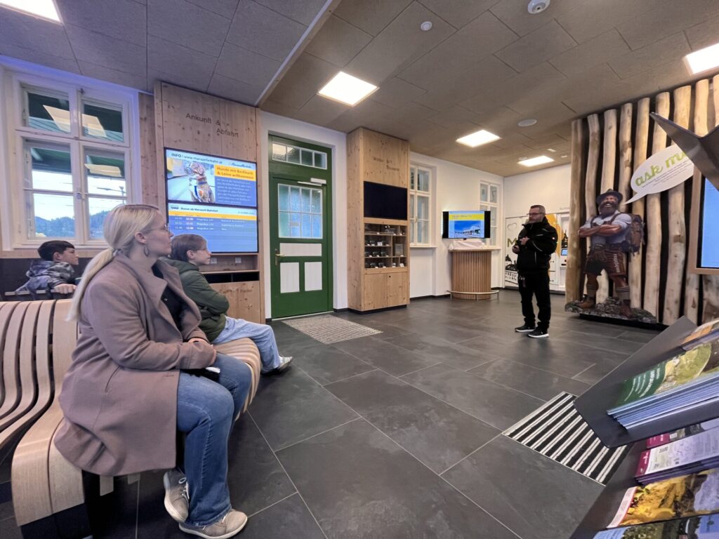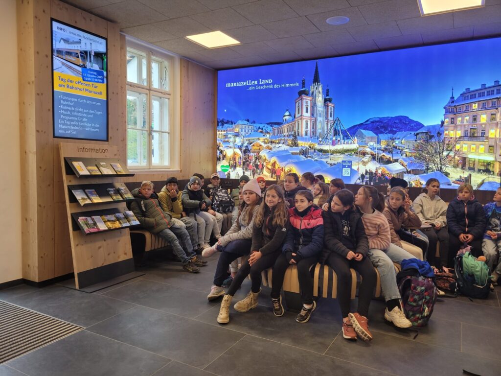 Im Anschluss empfingen uns am Bahnhof die freundlichen Mitarbeiter*innen der Mariazellerbahn und gaben uns eine umfangreiche Führung, bei der wir den neu gestalteten Warteraum und die frisch renovierten Bahnsteige erkunden konnten.