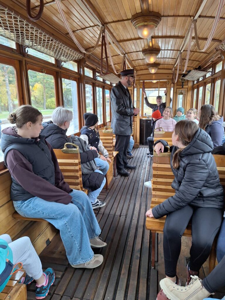 Für die erste Gruppe mit 2a, 2b und 3a MS ging es um 10:00 Uhr an der Promenade los. Um 10:25 Uhr starteten die 1a, 1b, 3b, 4a, 4b MS und PTS. Mit den historischen Triebwagen der Museumstramway wurden wir bequem zum Bahnhof transportiert. Viele bestaunten die schicken Uniformen der Museumstramway-Mitarbeiter und die über 100 Jahre alten nostalgischen Fahrzeuge.