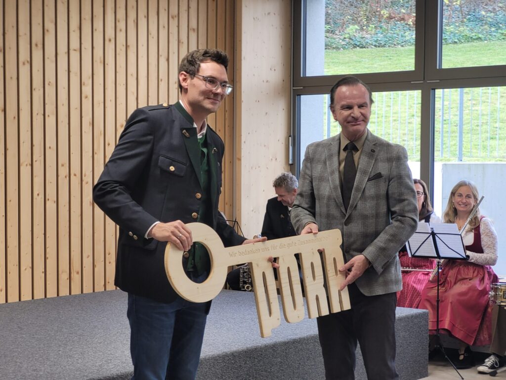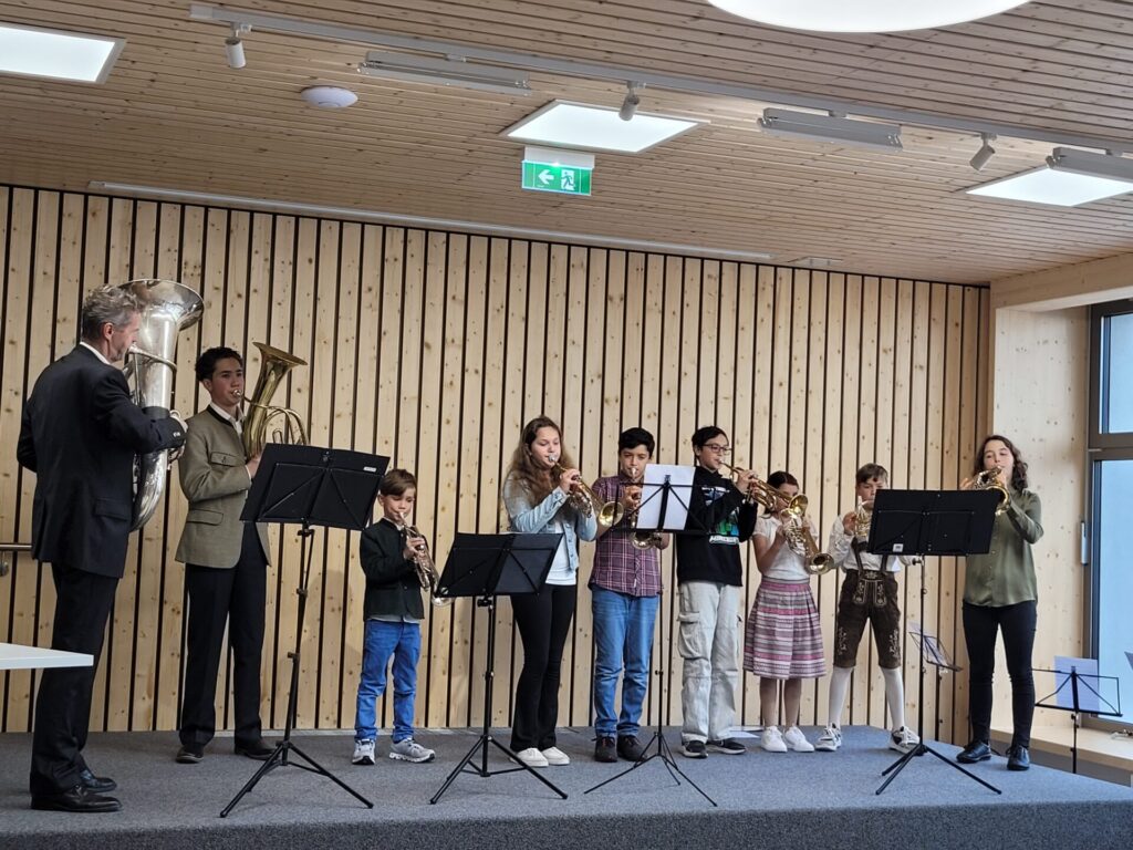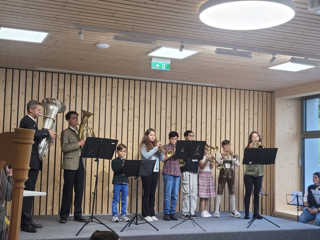 Den musikalischen Auftakt bildete der souveräne Auftritt des Blechbläserensembles der Musikschule. Nach der Begrüßung durch Bürgermeister Helmut Schweiger ging es musikalisch weiter mit dem Volksmusikensemble der Musikschule, welches „Tanz ma an Franze“ von L. Maierhofer gekonnt darbot.