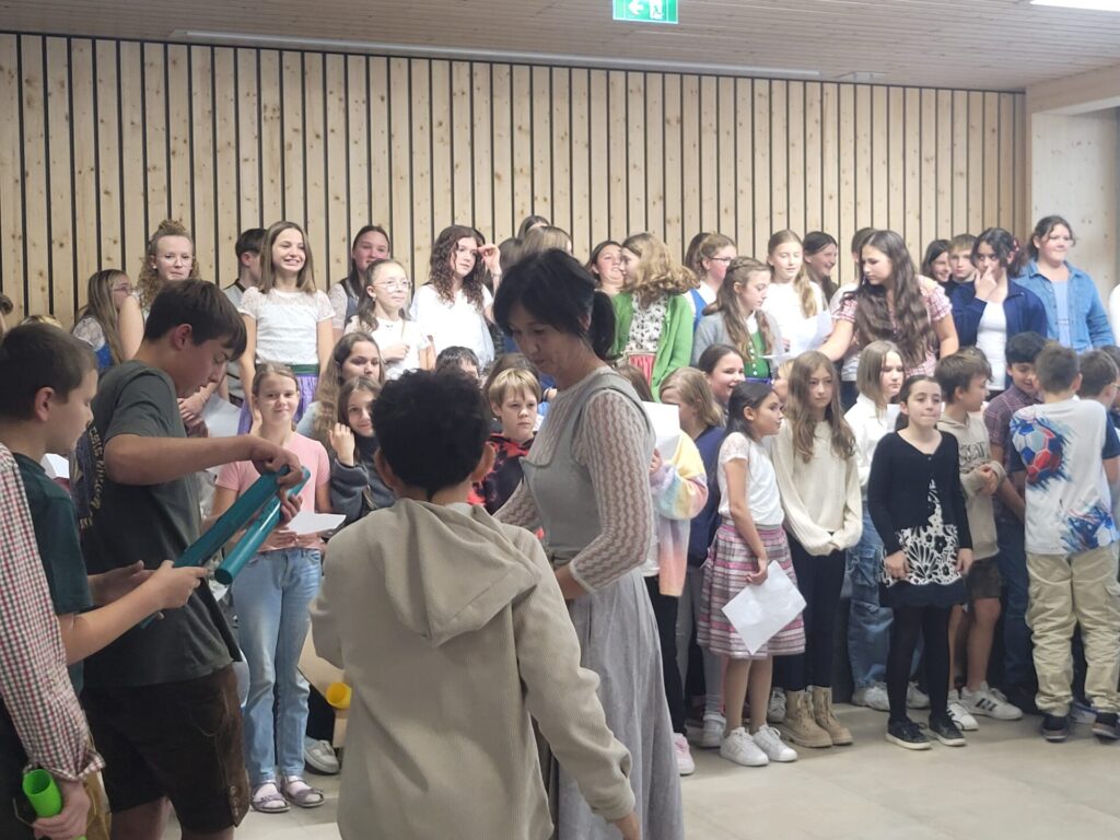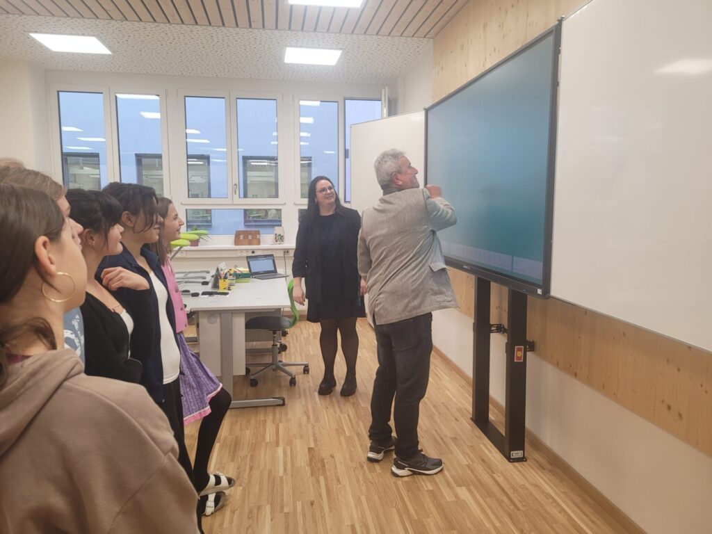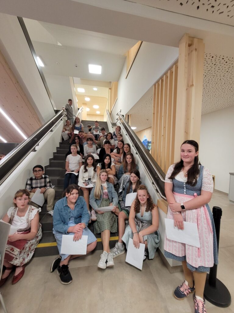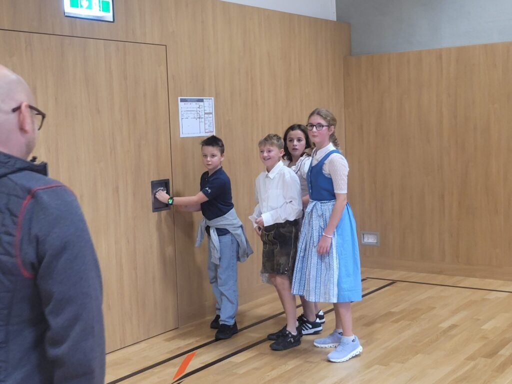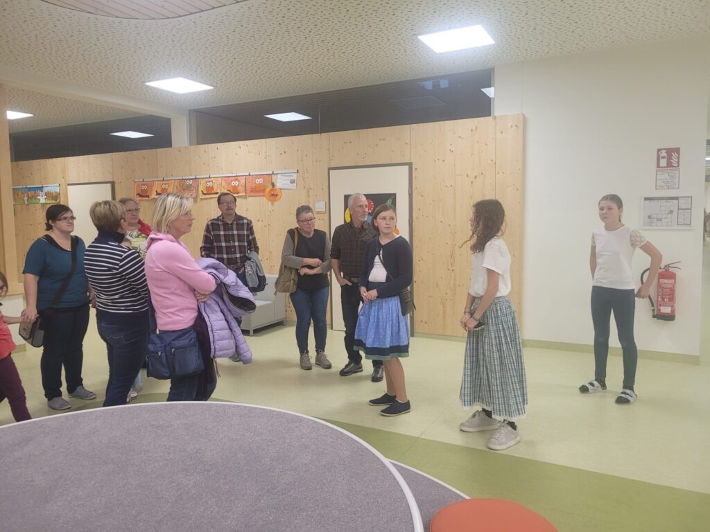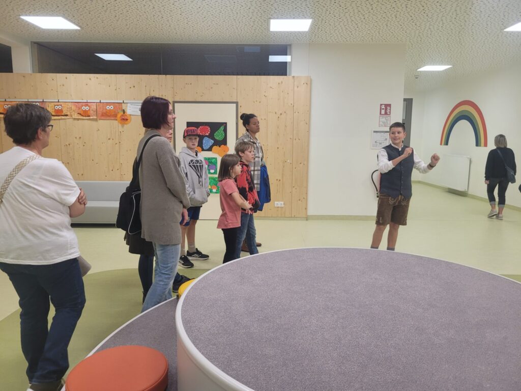 Im Rahmen von Führungen konnten sich alle Interessierten davon überzeugen, dass die vielen Lobesworte zum neuen Schulzentrum absolute Berechtigung haben. Ab 15:30 Uhr führten Mittelschüler*innen die Gäste durch das weitläufige, moderne Gebäude. Sie durften unter anderem den großen Turnsaal, den MINT-Raum, einige Klassenräume und die Musikschule unter kompetenter Begleitung erkunden.