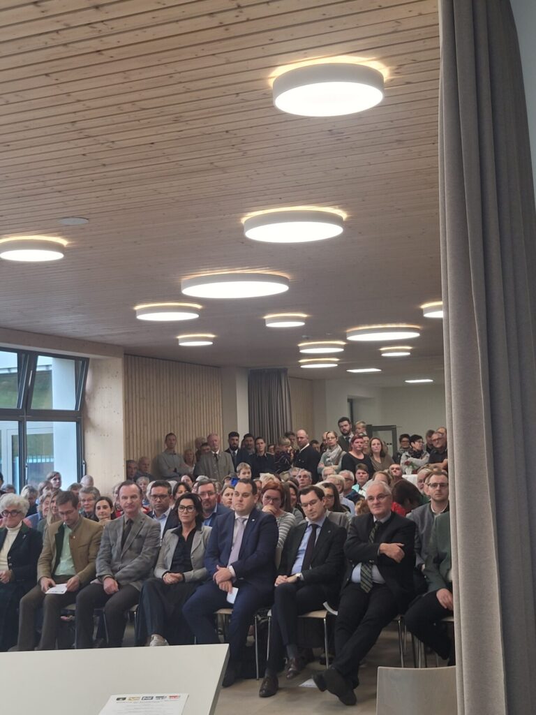 Volksschule, Mittelschule, Polytechnische Schule und Musikschule unter einem Dach – unser Schulzentrum bietet ideale Voraussetzungen sowohl für Schüler*innen als auch für das Personal. Die freundliche, helle Gestaltung mit den gemütlichen Holzelementen sorgt für eine positive Atmosphäre und wurde von den Redner*innen besonders hervorgehoben.