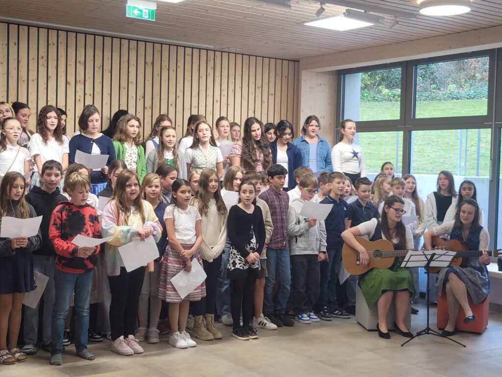 Nach den Grußworten der Ehrengäste hatte der Chor der Mittelschule mit „Viva la Vida“ von Coldplay seinen glanzvollen Auftritt. So viel Herzblut, Freude und Begeisterung – der tosende Applaus war redlich verdient.