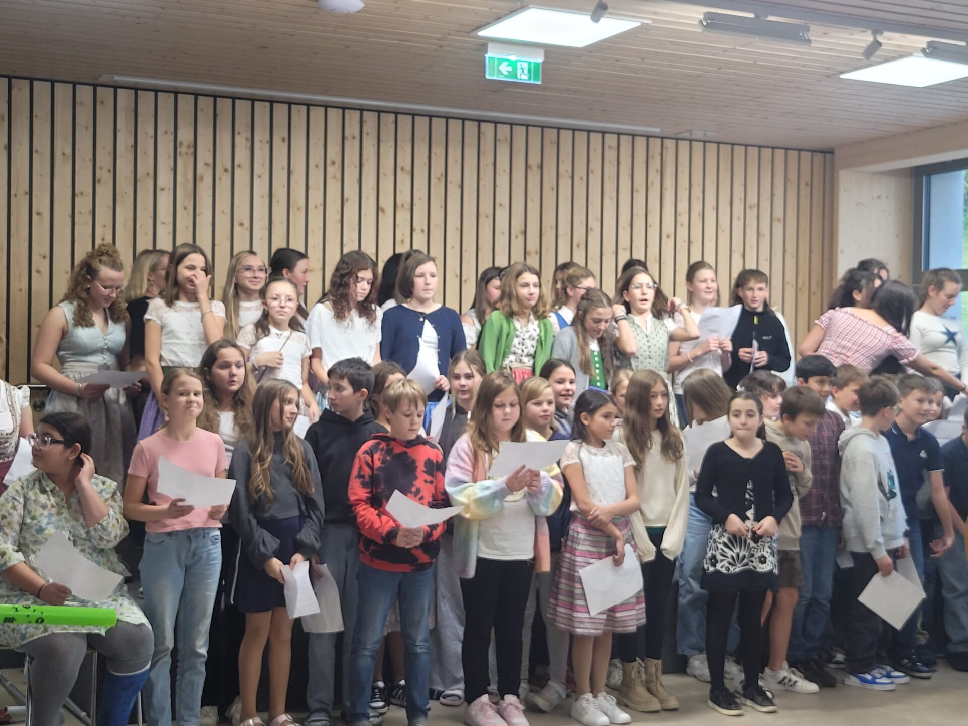 Nach den Grußworten der Ehrengäste hatte der Chor der Mittelschule mit „Viva la Vida“ von Coldplay seinen glanzvollen Auftritt. So viel Herzblut, Freude und Begeisterung – der tosende Applaus war redlich verdient.
