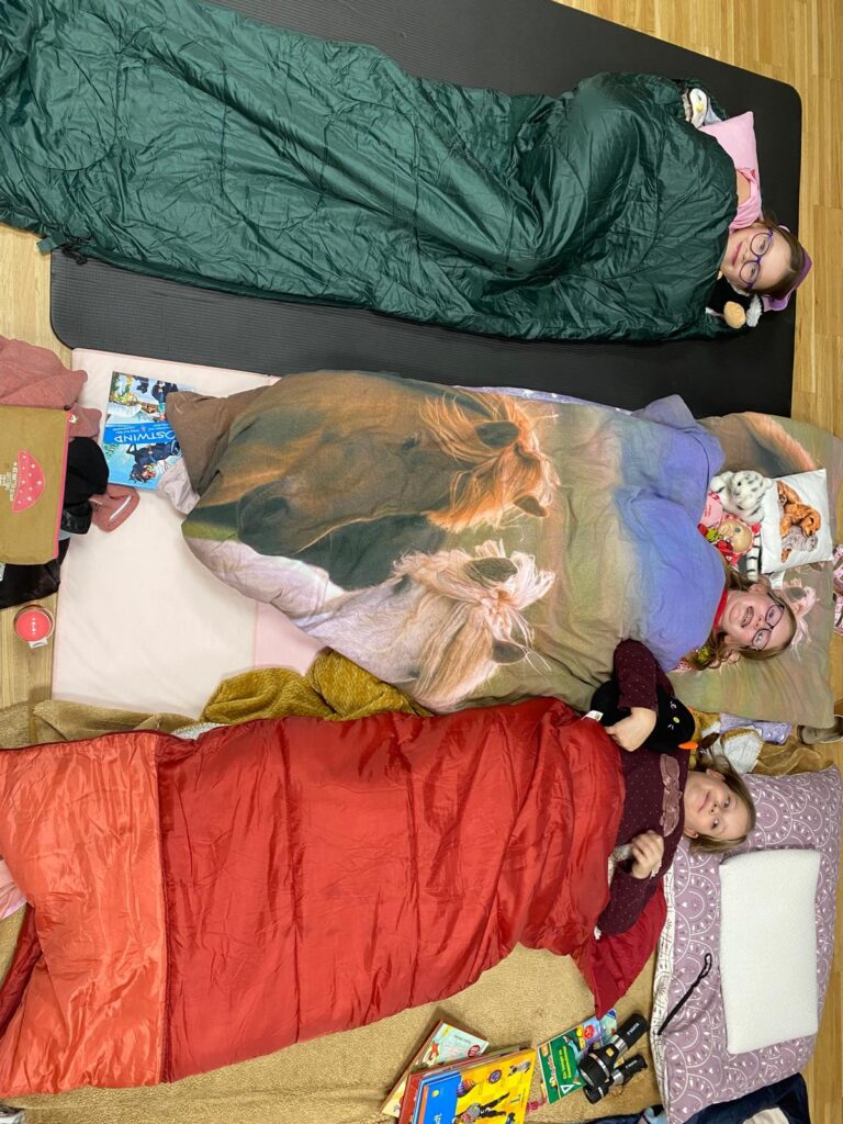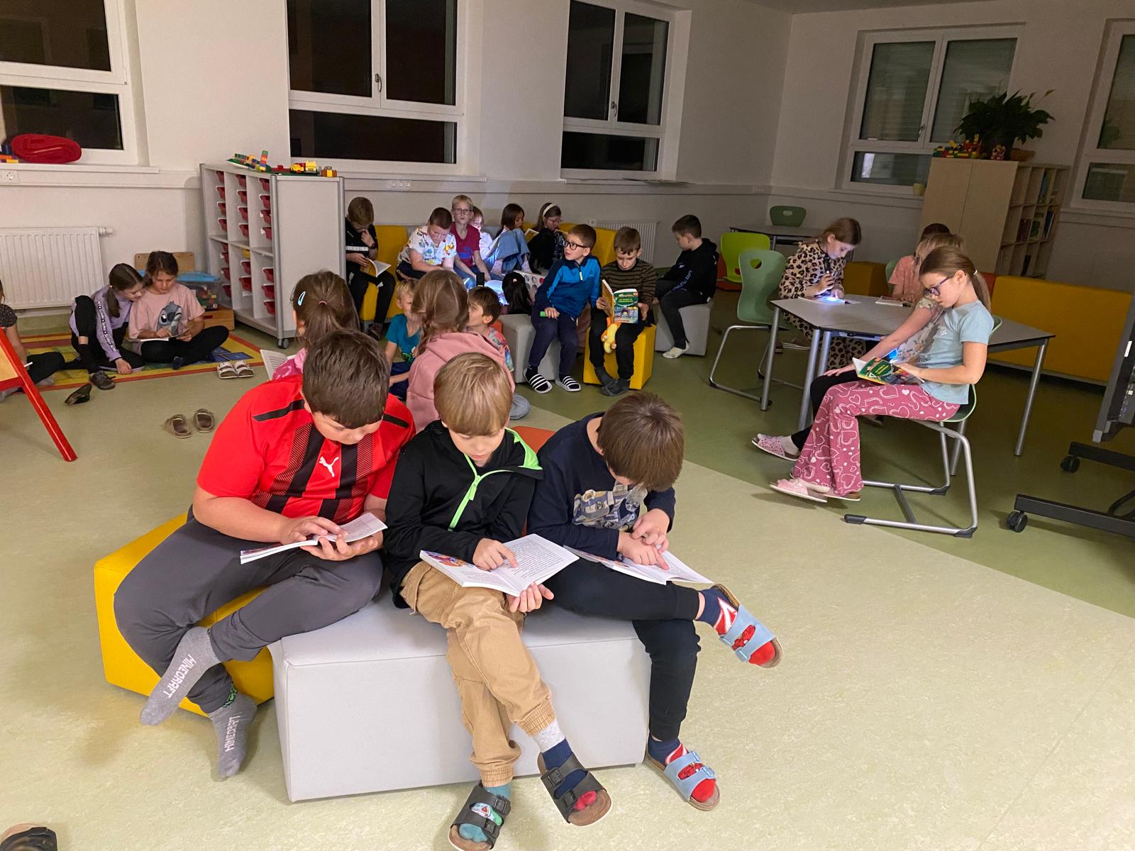 Anfang November verbrachten die Kinder der 3. Klassen eine aufregende Lesenacht in der neuen Schule. Gemeinsam lasen wir das Buch „Ein Vampir im Klassenzimmer“. Bis spät in die Nacht wurde gesungen, gespielt, geplaudert und gelacht. Mit einem leckeren Frühstück starteten wir in einen gemütlichen Vormittag.