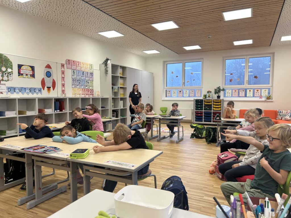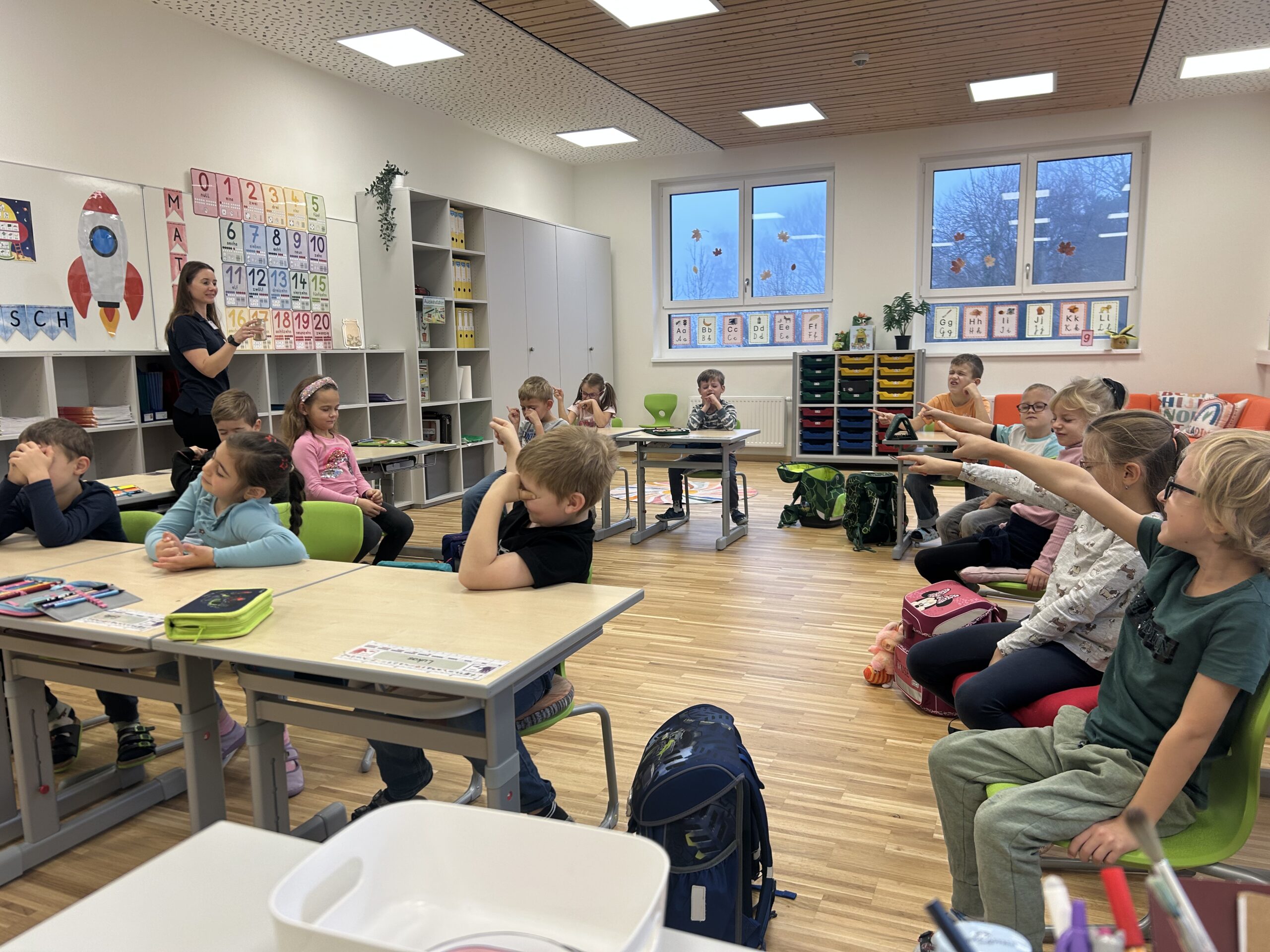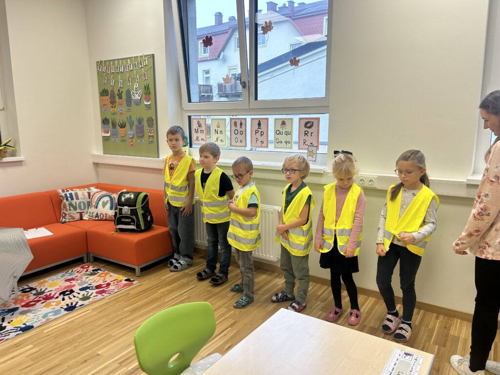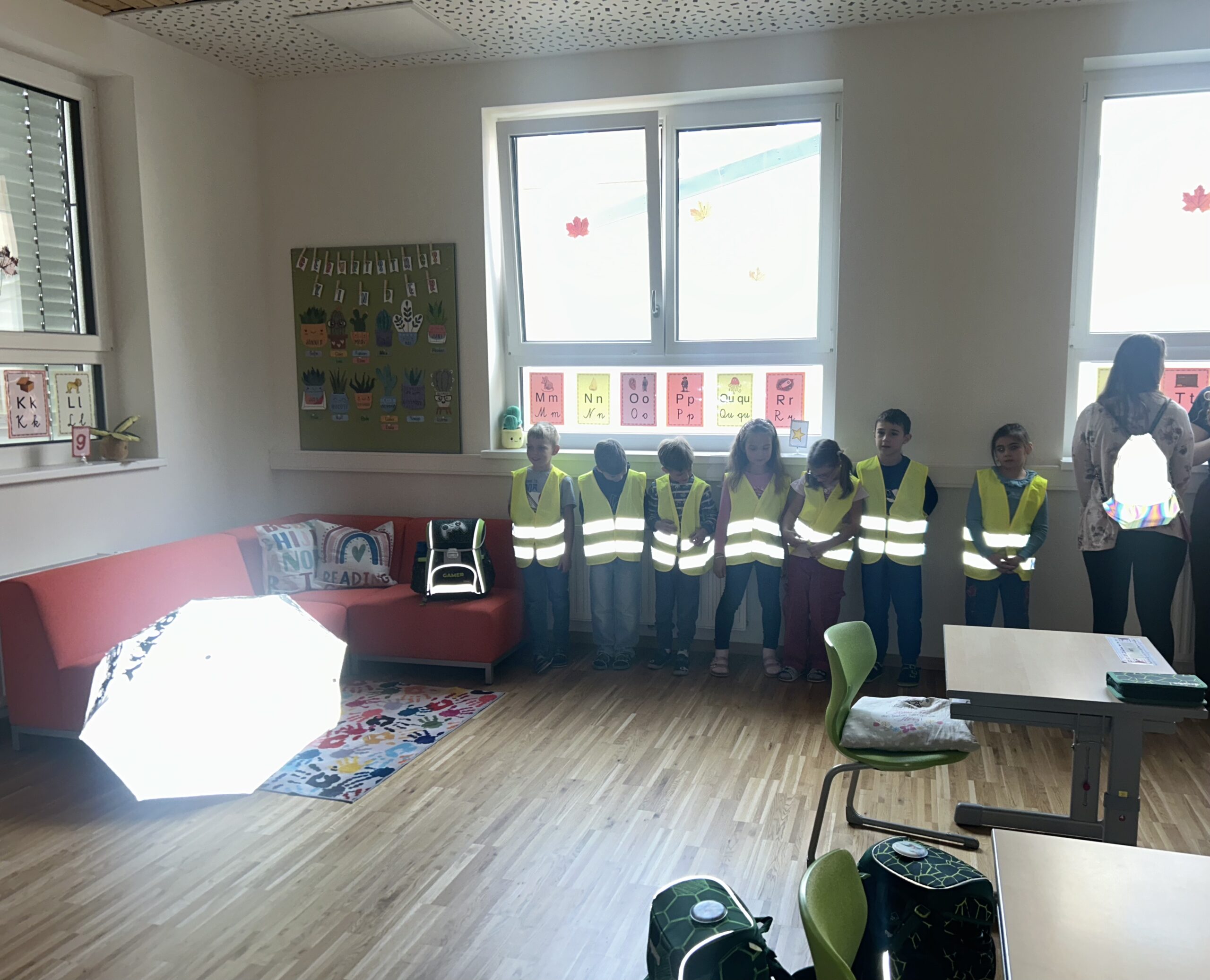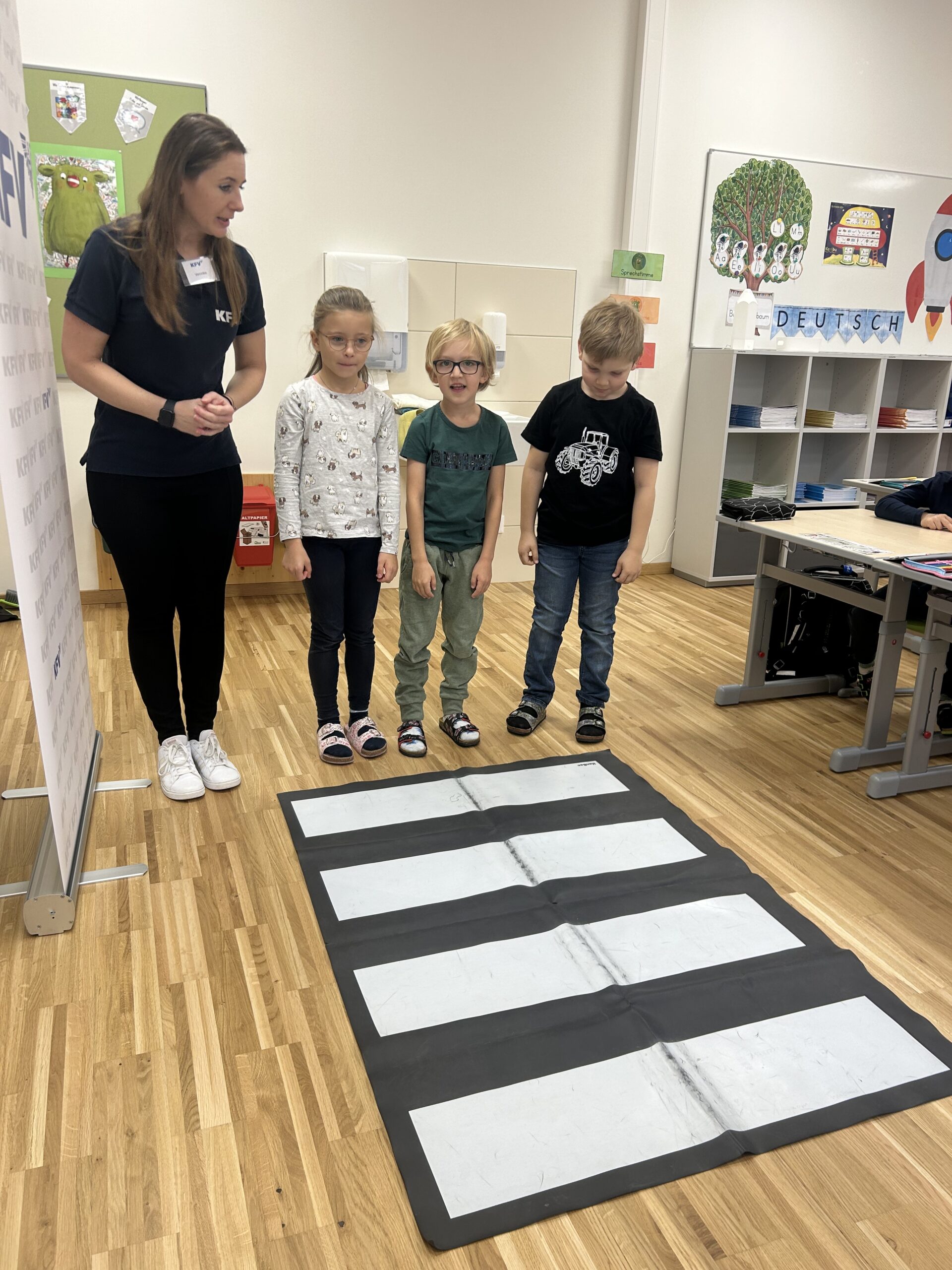 Im Rahmen des Programms „Sicherheit spielerisch erleben“ lernten die Kinder auf unterhaltsame Weise vieles über das richtige Verhalten im Straßenverkehr. Gemeinsam mit Helmi erfuhren sie, wie man sicher über den Zebrastreifen geht, wie man im Dunkeln besser gesehen wird – und konnten dies sogar in einem spannenden Experiment selbst ausprobieren.