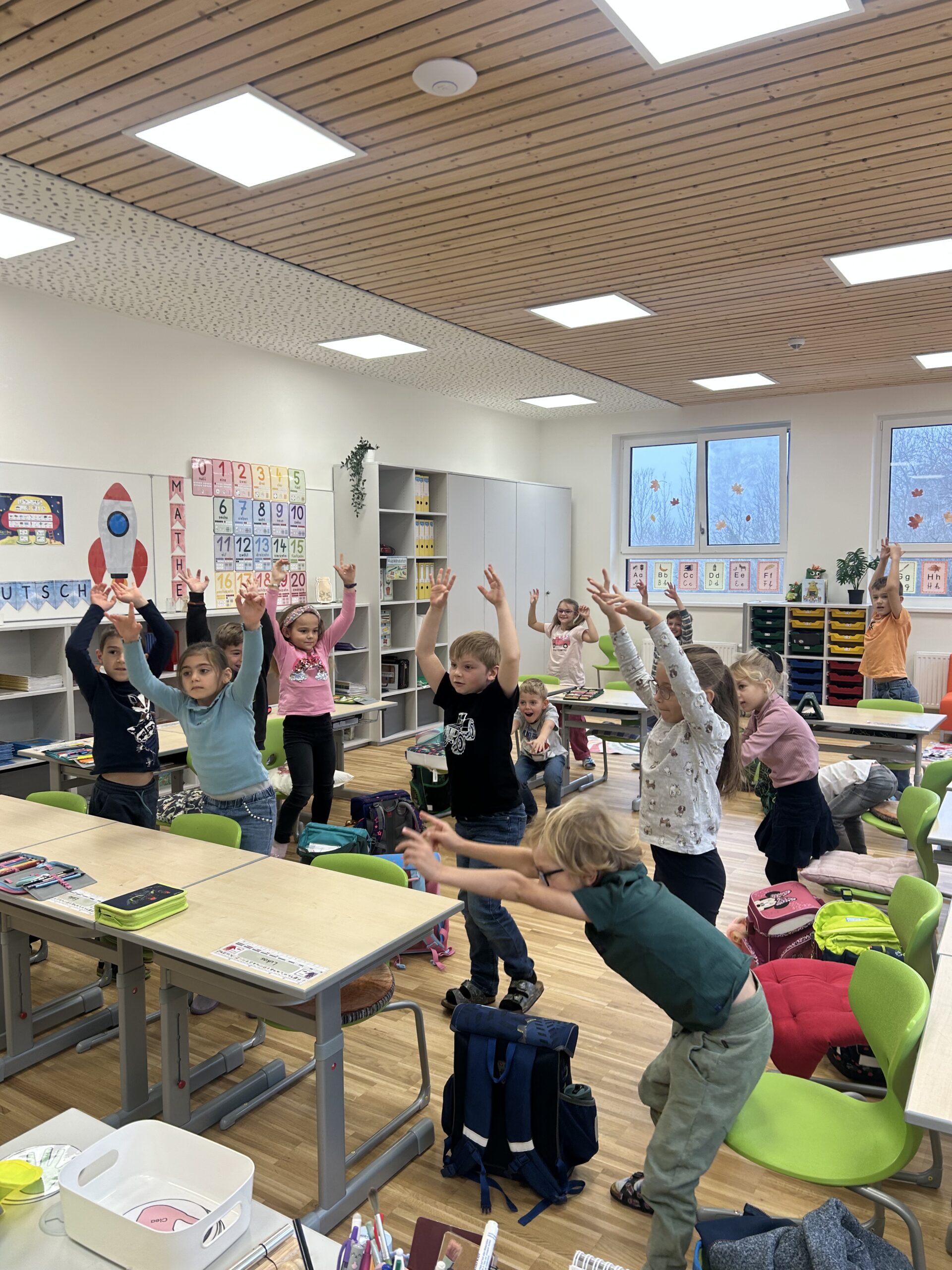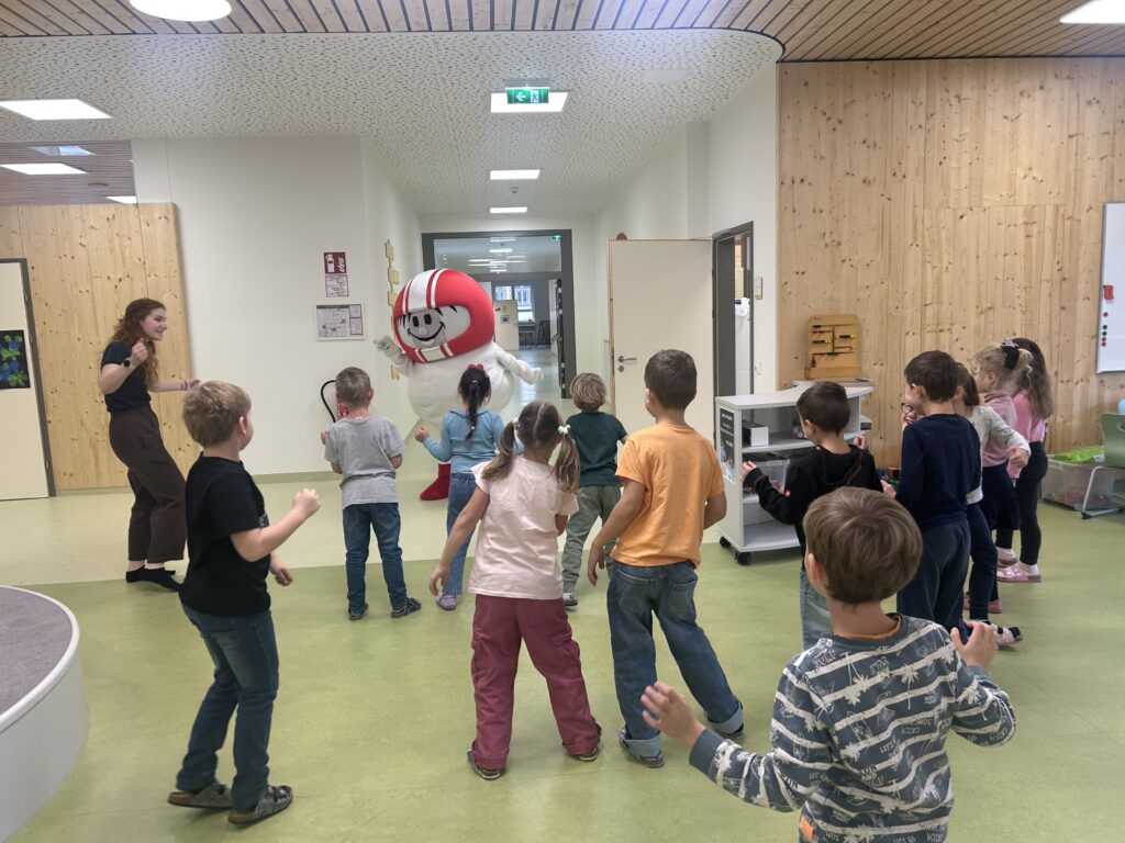 Zum Abschluss machten alle Kinder mit Helmi einen lustigen Stopp-Tanz, bei dem Bewegung und Aufmerksamkeit gefragt waren.