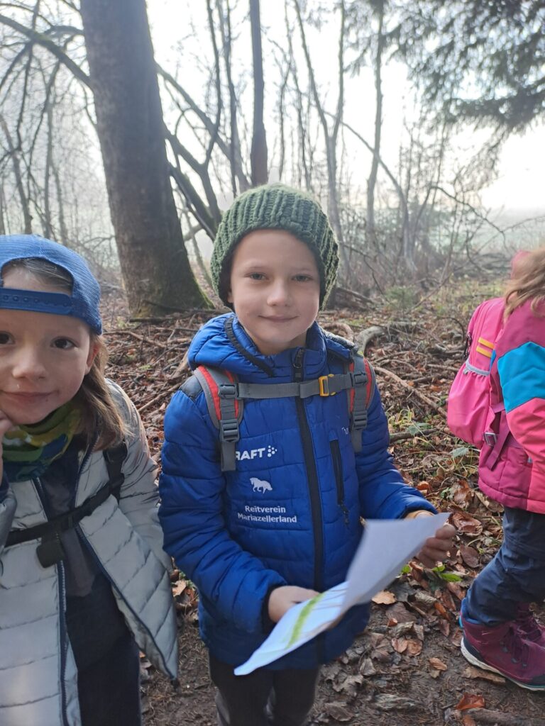 Zu Beginn haben wir über die Regeln im Wald gesprochen: dass man auf den Wegen bleibt, keinen Müll liegen lässt und leise spricht, damit die Tiere nicht gestört werden. Danach durften wir selbst aktiv werden: Wir suchten verschiedene Gegenstände im Wald und überlegten gemeinsam, wozu sie gehören und welche Bedeutung sie für die Natur haben.