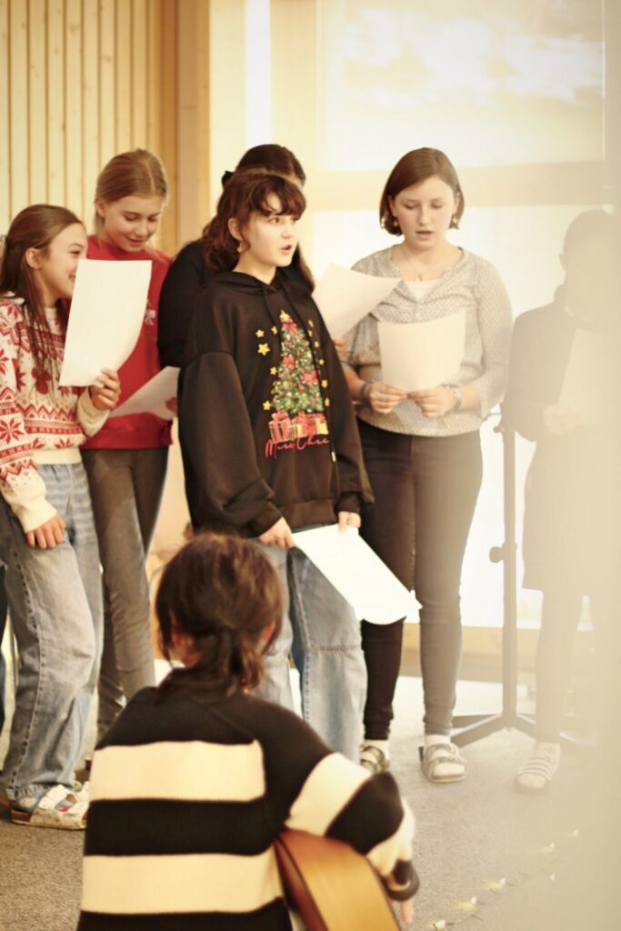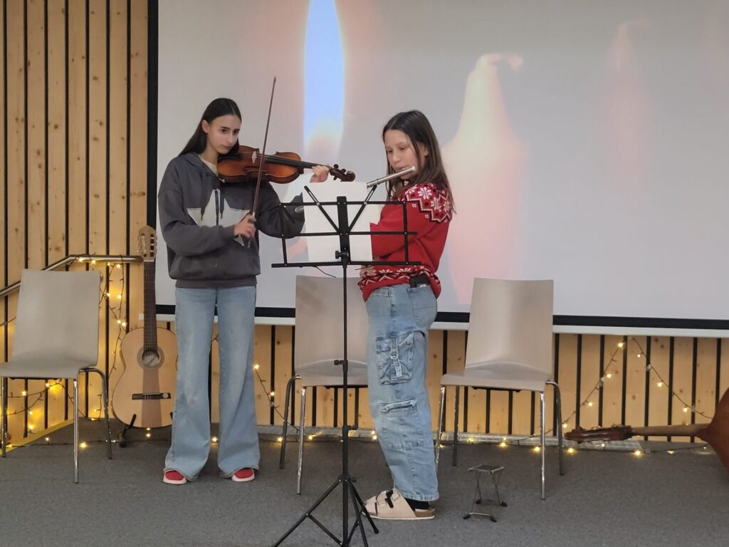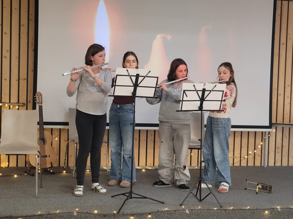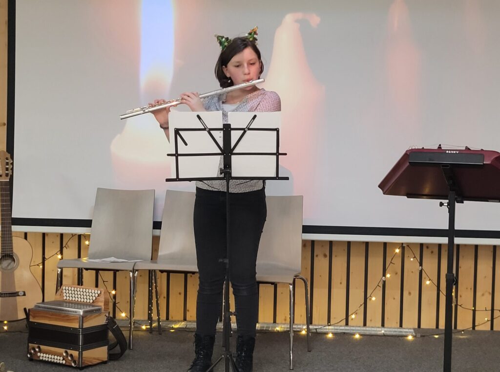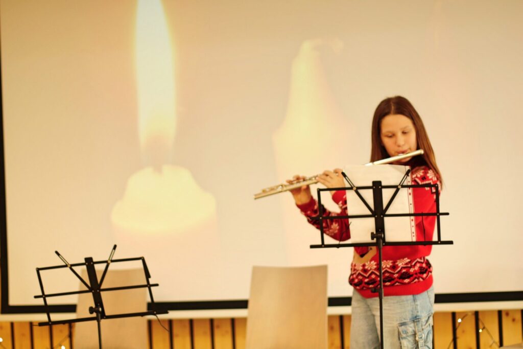 Einige talentierte Schüler*innen sorgten für musikalische Unterhaltung. Mit ihren festlichen Stücken ließen sie weihnachtliche Stimmung aufkommen. Der perfekte Rahmen, um in der oftmals hektischen Adventzeit Ruhe zu tanken und Kraft zu schöpfen.