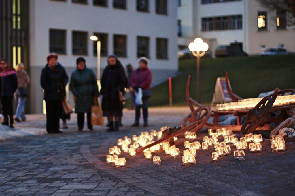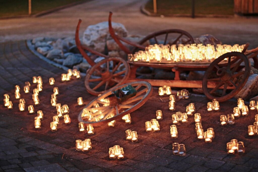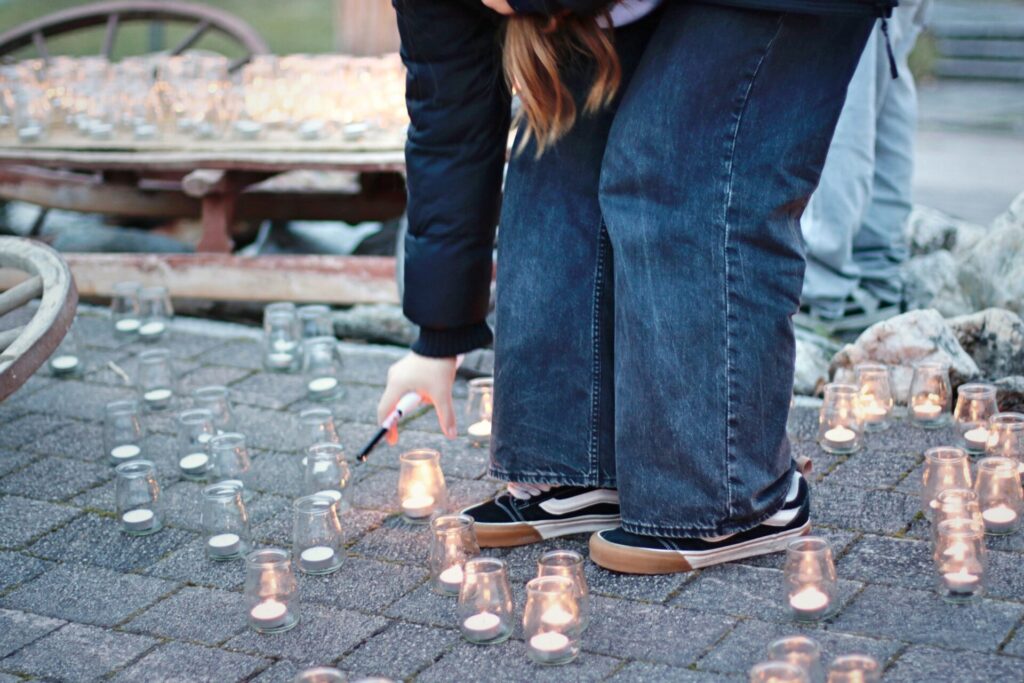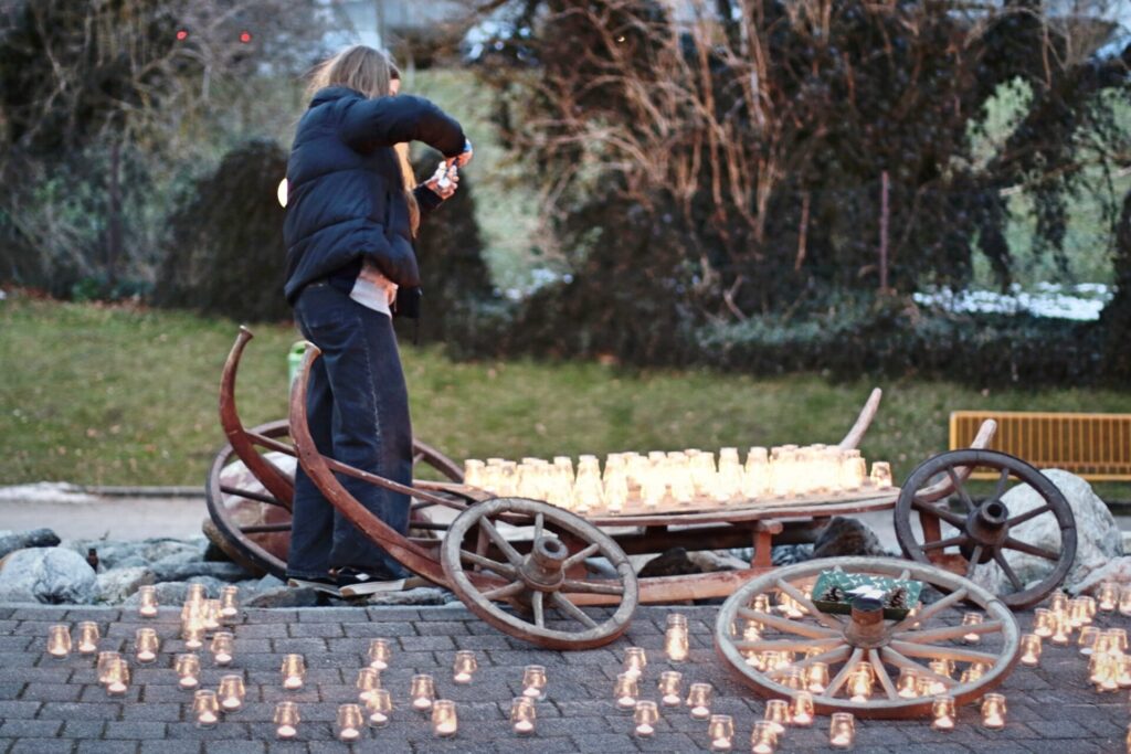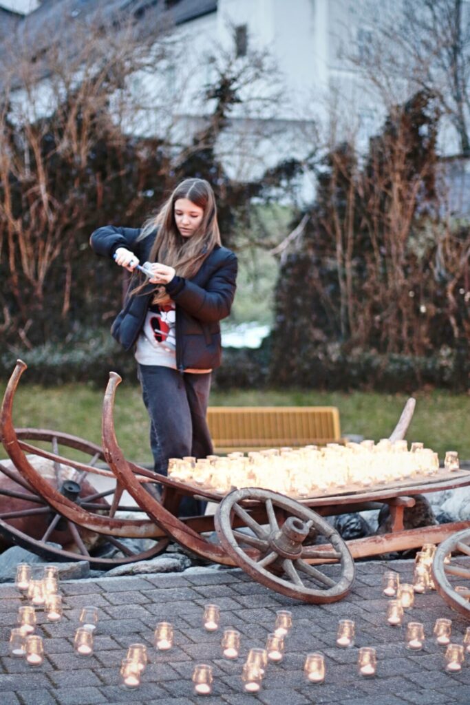 Das Highlight der Veranstaltung war unser Lichtermeer. Während des Adventmarktes konnte man an der Lichterstation Kerzen kaufen, diese wurden alle um 16:30 Uhr beim Brunnen vor dem Schulgebäude angezündet. Für noch festlichere Stimmung sorgte dabei das Lied „Advent is a Leuchtn“.