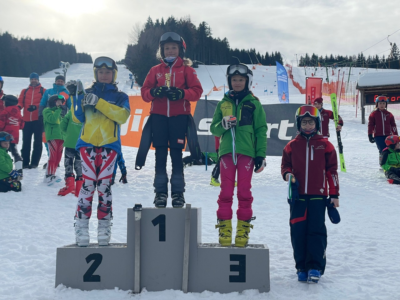 Unsere jungen RennläuferInnen zeigten tolle Leistungen und wurden dafür auch belohnt: Vier Stockerlplätze konnten erreicht werden, außerdem gab es viele weitere hervorragende Platzierungen im starken Teilnehmerfeld. Doch nicht nur die Ergebnisse machten diesen Tag zu etwas Besonderem.