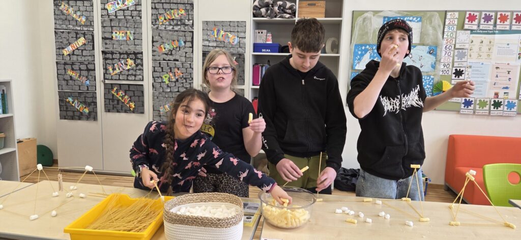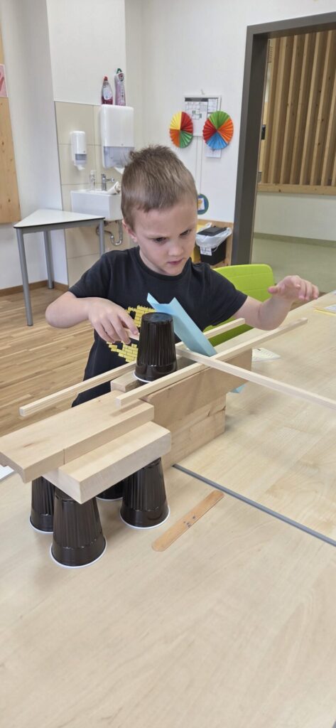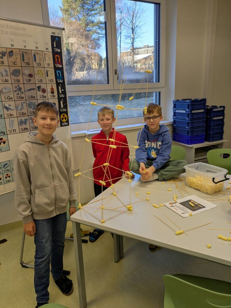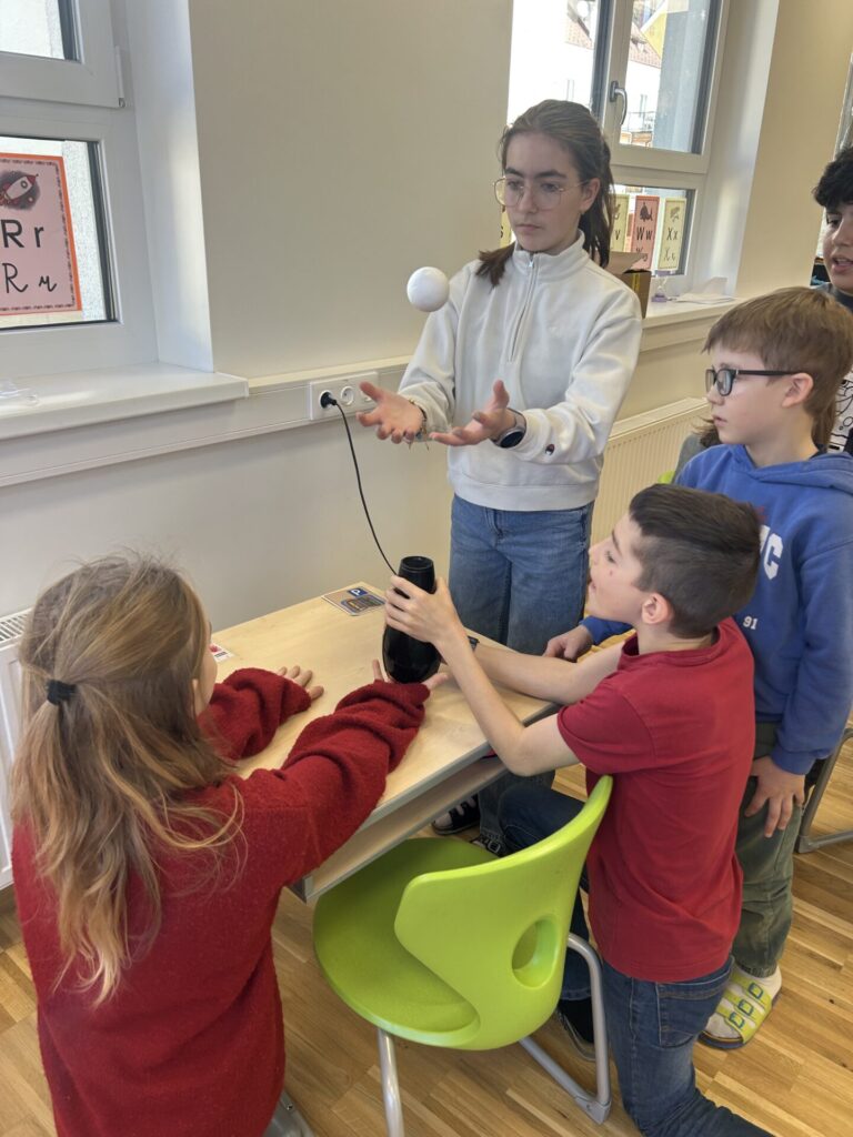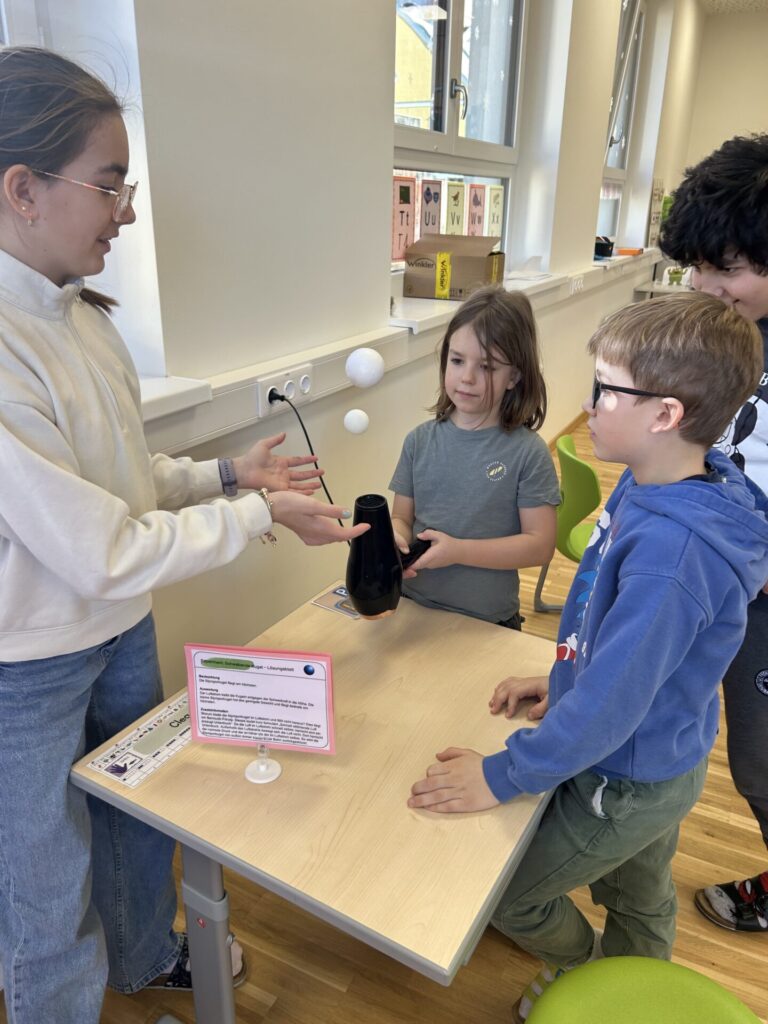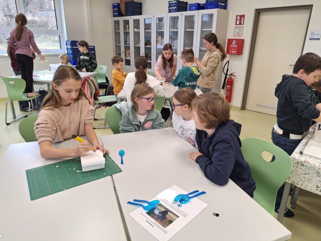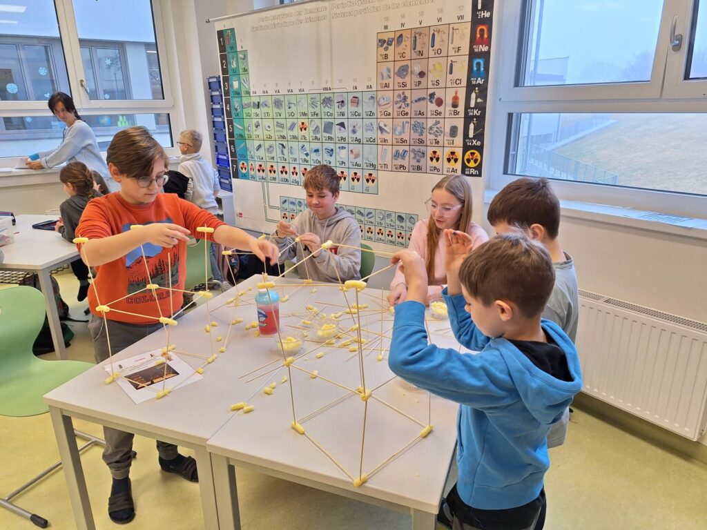 Selbst Forschen und Entdecken war im MINT-Raum angesagt. So bastelten und betrieben die Kinder ihre eigene Kaplan-Turbine, sie wurden handwerklich aktiv und konnten mit ihren beeindruckend hohen Türmen aus Spaghettinudeln und Marshmallows hautnah die Prinzipien der Gravitation und Statik erleben. Viel Begeisterung rief auch das Hantieren mit der nicht-newtonschen Flüssigkeit hervor, welche sich anders als gewöhnliche Flüssigkeiten verhält. Ihre Zähigkeit ist abhängig von der einwirkenden Kraft.