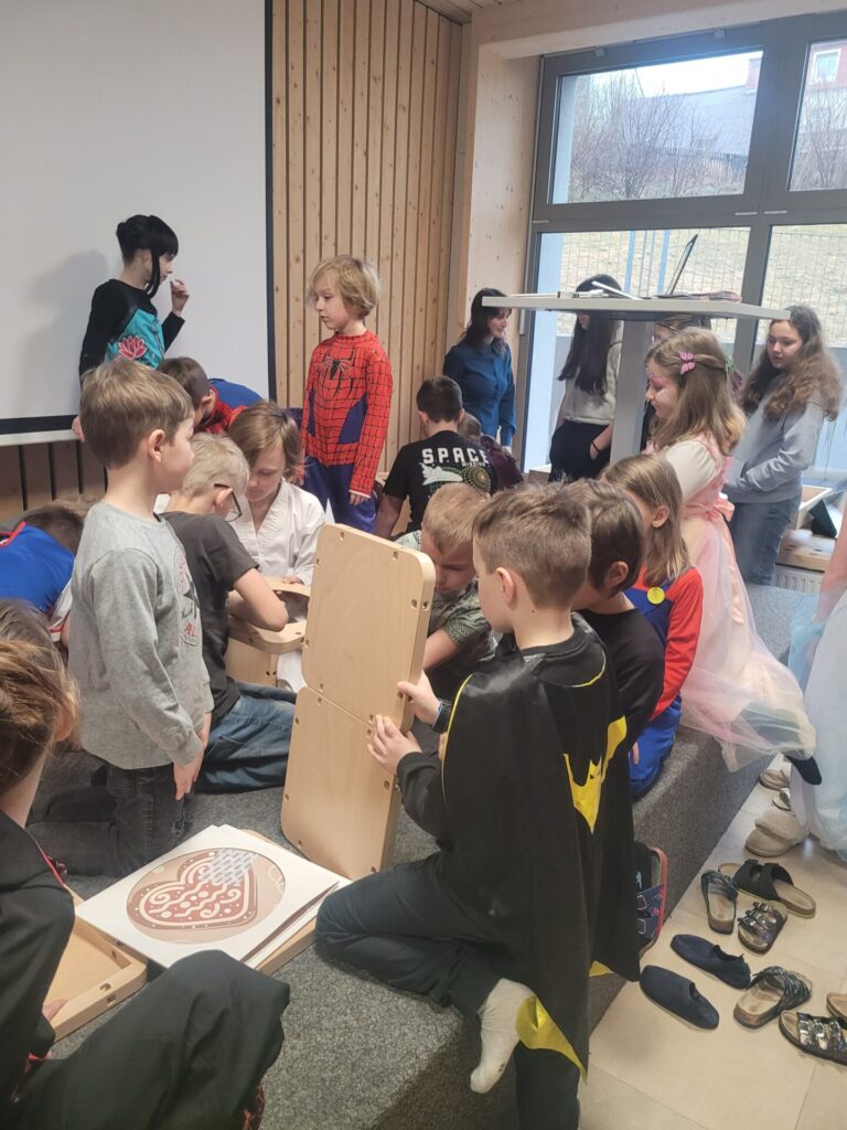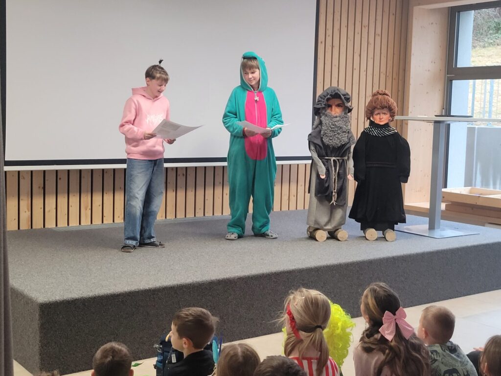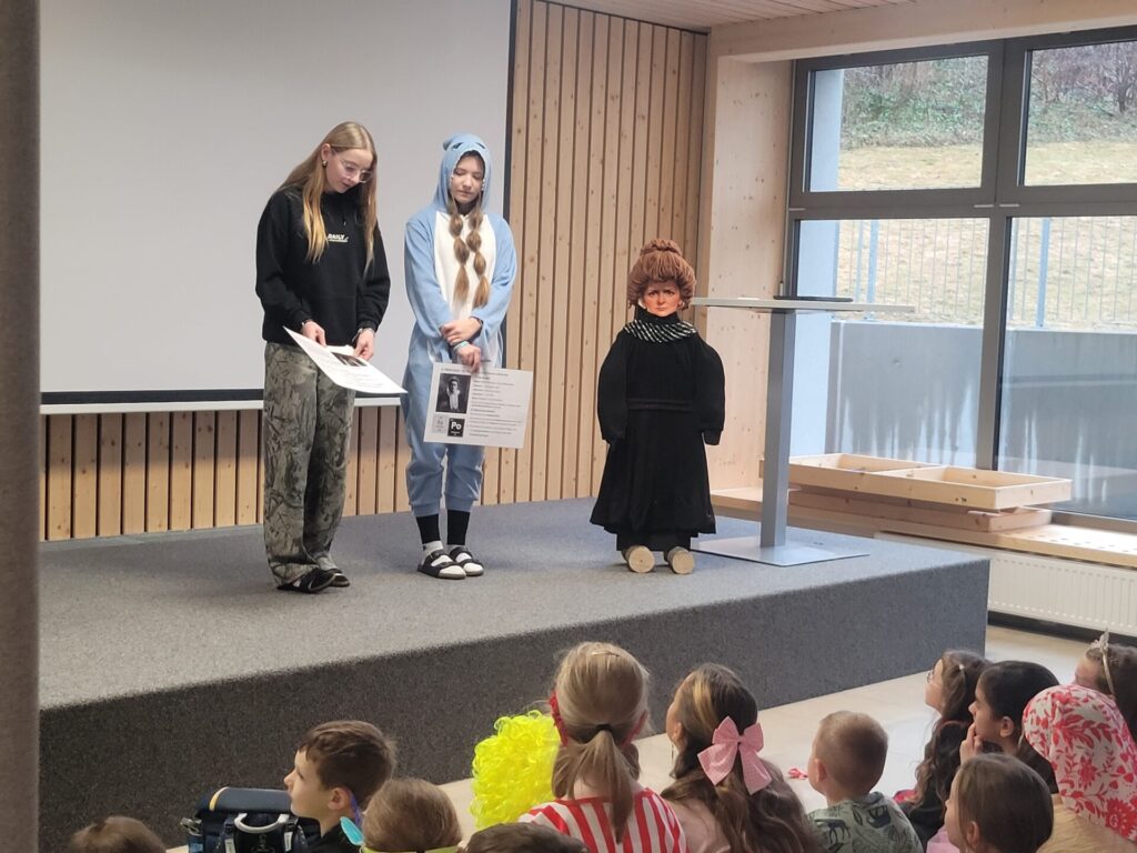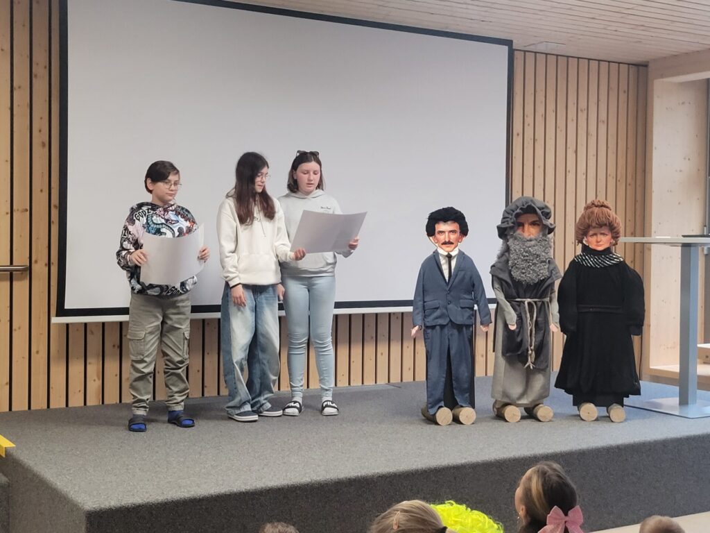 Den krönenden Abschluss einer gelungenen Woche stellte die feierliche Präsentation der Holzfiguren von Leonardo da Vinci, Nikola Tesla, Marie Curie, Ada Lovelace und den Gebrüdern Wright dar. Einige Schülerinnen und Schüler der 3ab MS lasen Wissenswertes zu Leben und Wirken der Forscherinnen und Forscher vor. Alle Teilnehmenden haben in dieser Woche ihre Teamfähigkeit, ihren Forschergeist und ihre Kreativität unter Beweis gestellt. Wir sind stolz auf euch und freuen uns bereits jetzt auf die MINT-Woche im nächsten Schuljahr.