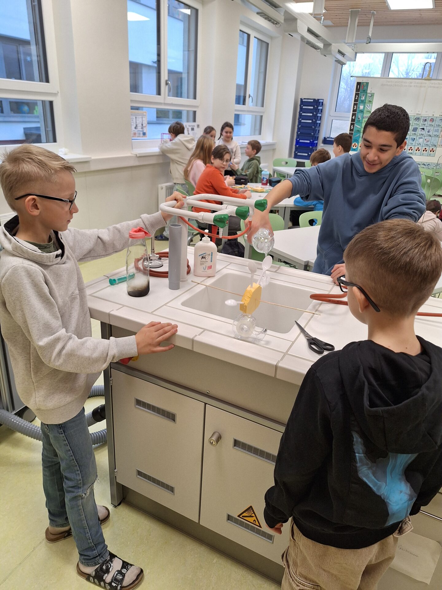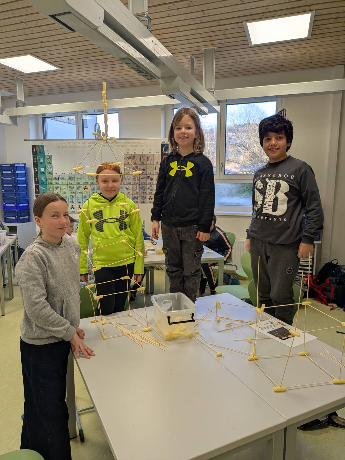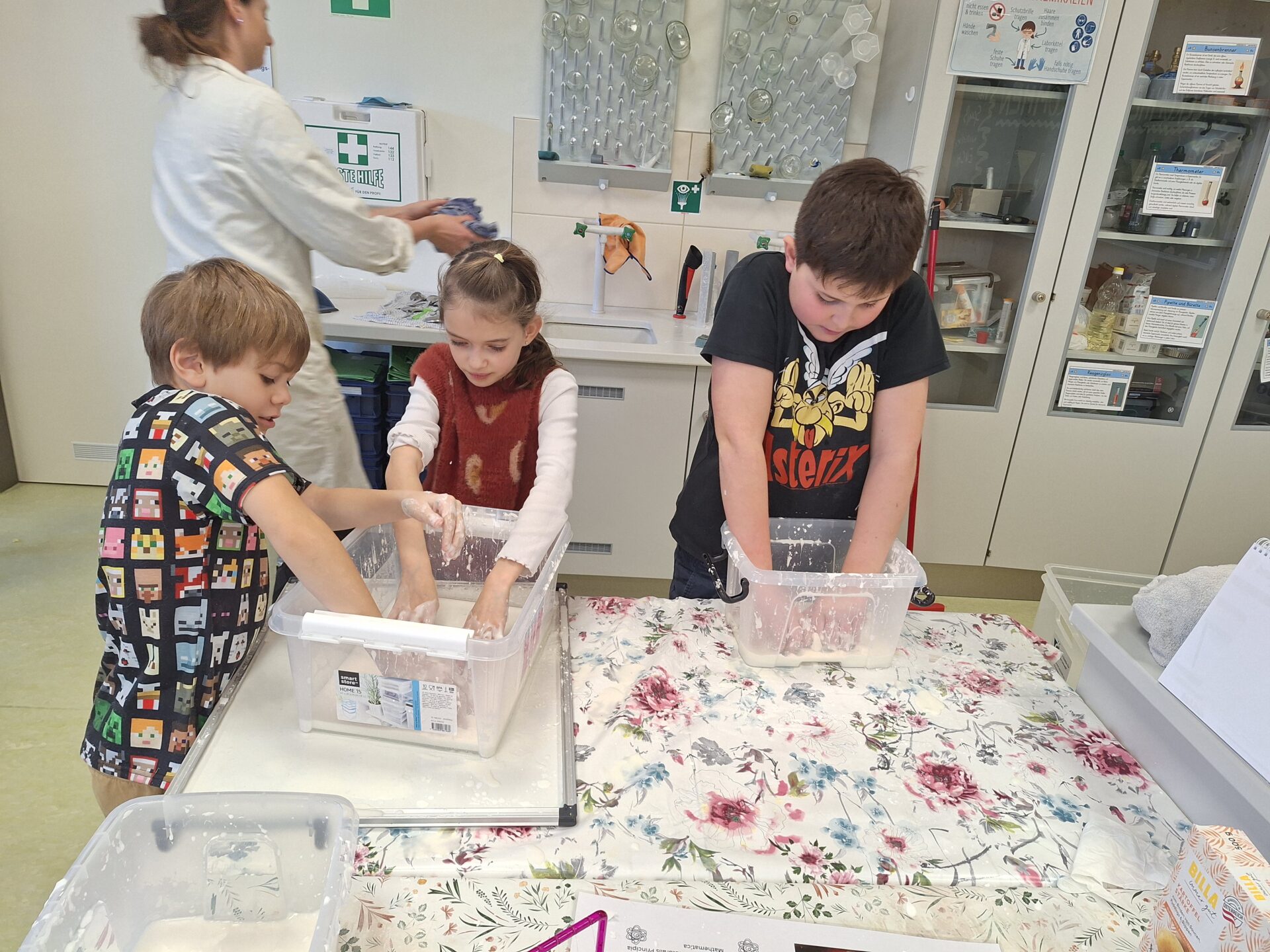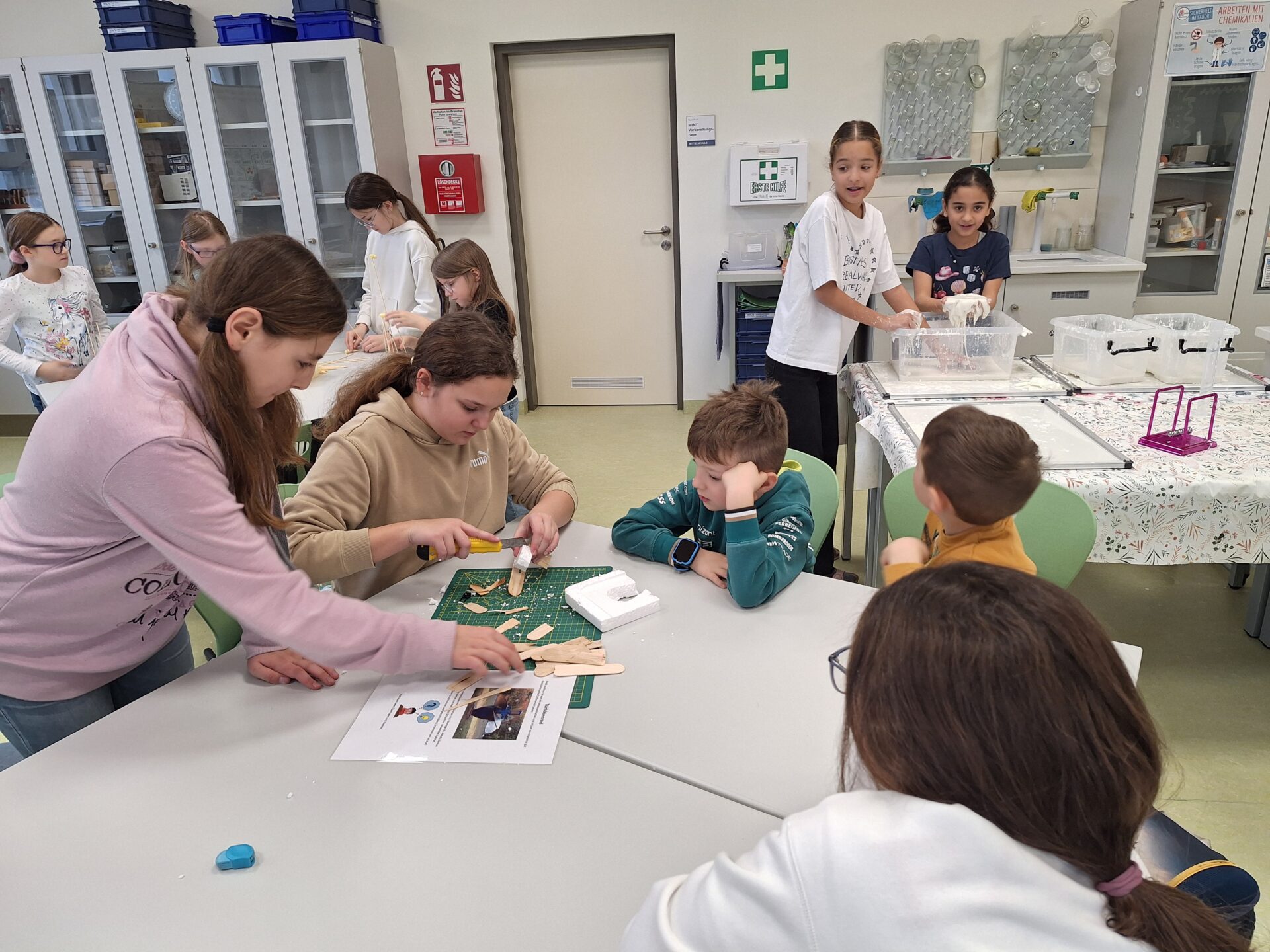 Selbst Forschen und Entdecken war im MINT-Raum angesagt. So bastelten und betrieben die Kinder ihre eigene Kaplan-Turbine, sie wurden handwerklich aktiv und konnten mit ihren beeindruckend hohen Türmen aus Spaghettinudeln und Marshmallows hautnah die Prinzipien der Gravitation und Statik erleben. Viel Begeisterung rief auch das Hantieren mit der nicht-newtonschen Flüssigkeit hervor, welche sich anders als gewöhnliche Flüssigkeiten verhält. Ihre Zähigkeit ist abhängig von der einwirkenden Kraft.