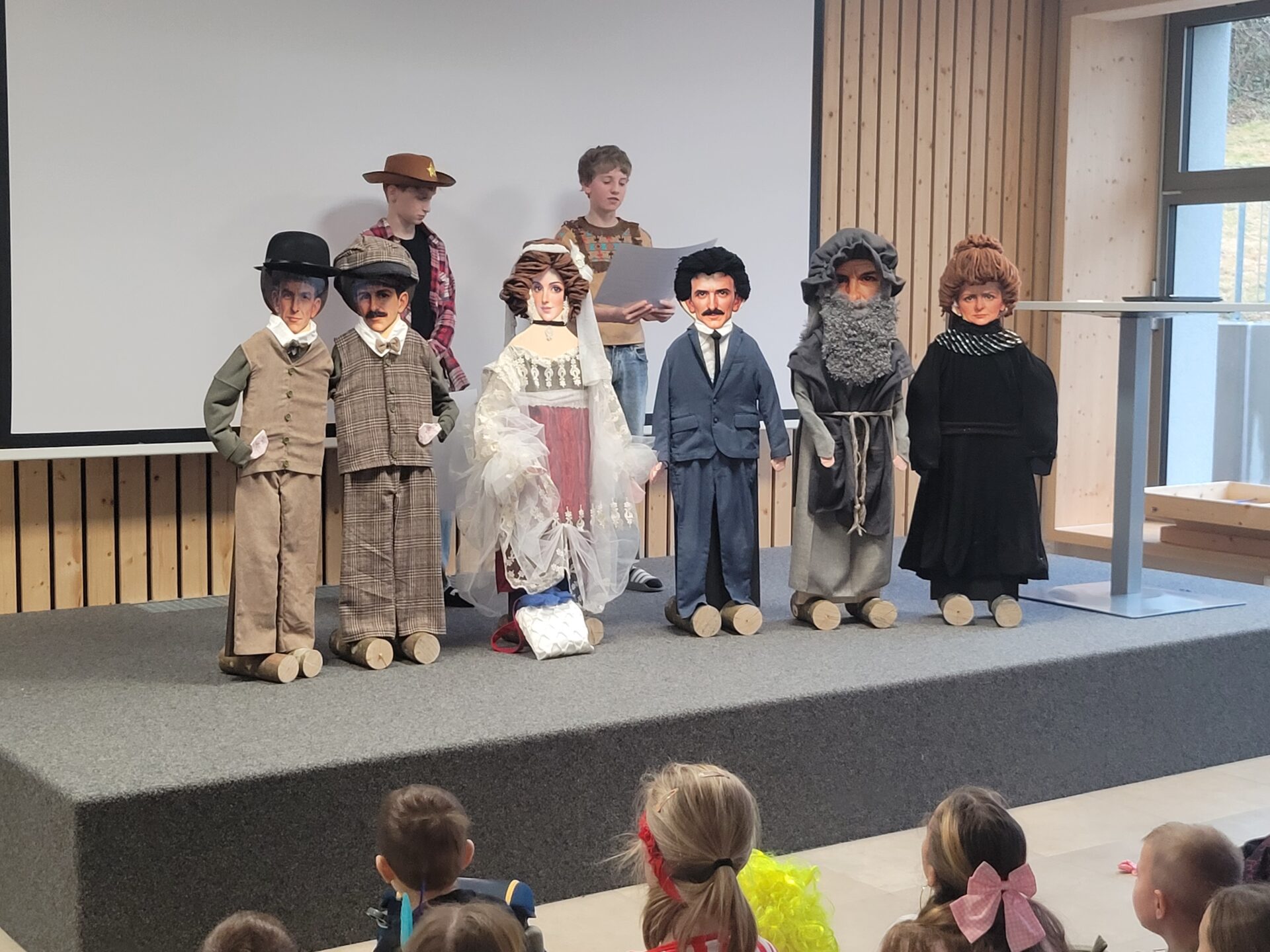 Den krönenden Abschluss einer gelungenen Woche stellte die feierliche Präsentation der Holzfiguren von Leonardo da Vinci, Nikola Tesla, Marie Curie, Ada Lovelace und den Gebrüdern Wright dar. Einige Schülerinnen und Schüler der 3ab MS lasen Wissenswertes zu Leben und Wirken der Forscherinnen und Forscher vor. Alle Teilnehmenden haben in dieser Woche ihre Teamfähigkeit, ihren Forschergeist und ihre Kreativität unter Beweis gestellt. Wir sind stolz auf euch und freuen uns bereits jetzt auf die MINT-Woche im nächsten Schuljahr.