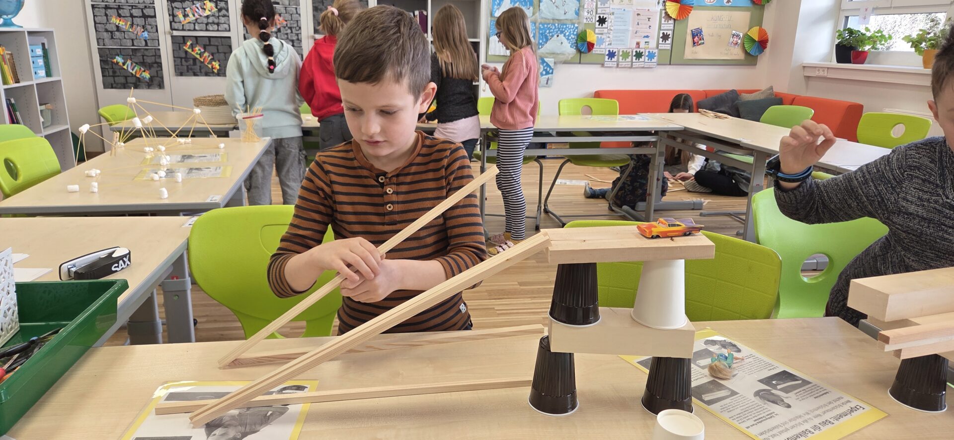 Vor den Semesterferien fand die MINT-Woche der Volksschule, 3. Klassen Mittelschule und Polytechnischen Schule statt. Sechs spannende, abwechslungsreiche Stationen luden zum Gestalten, Erfinden, Entdecken, Forschen und Staunen ein.