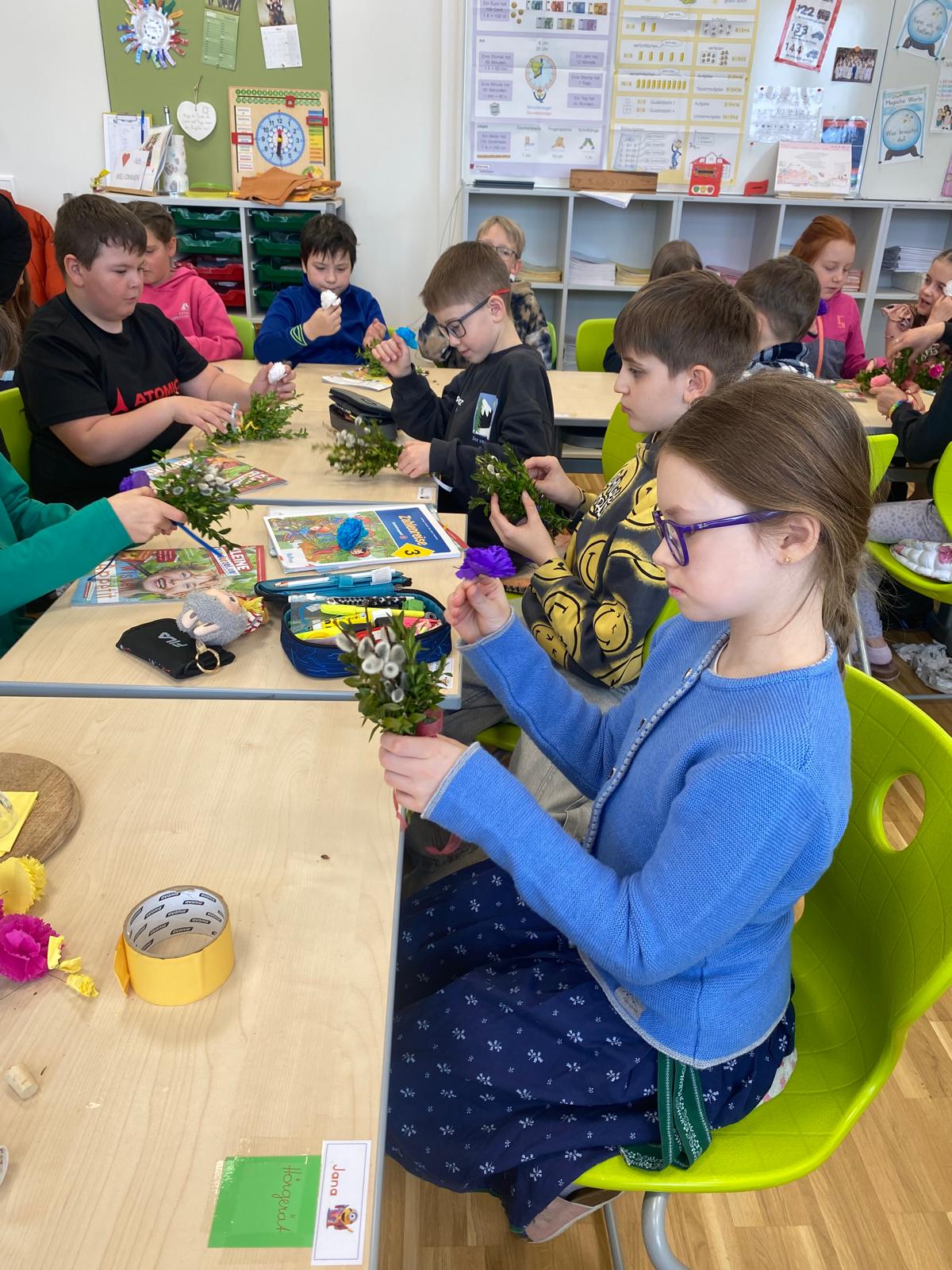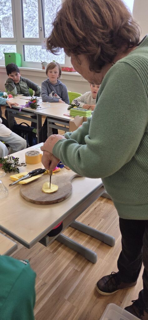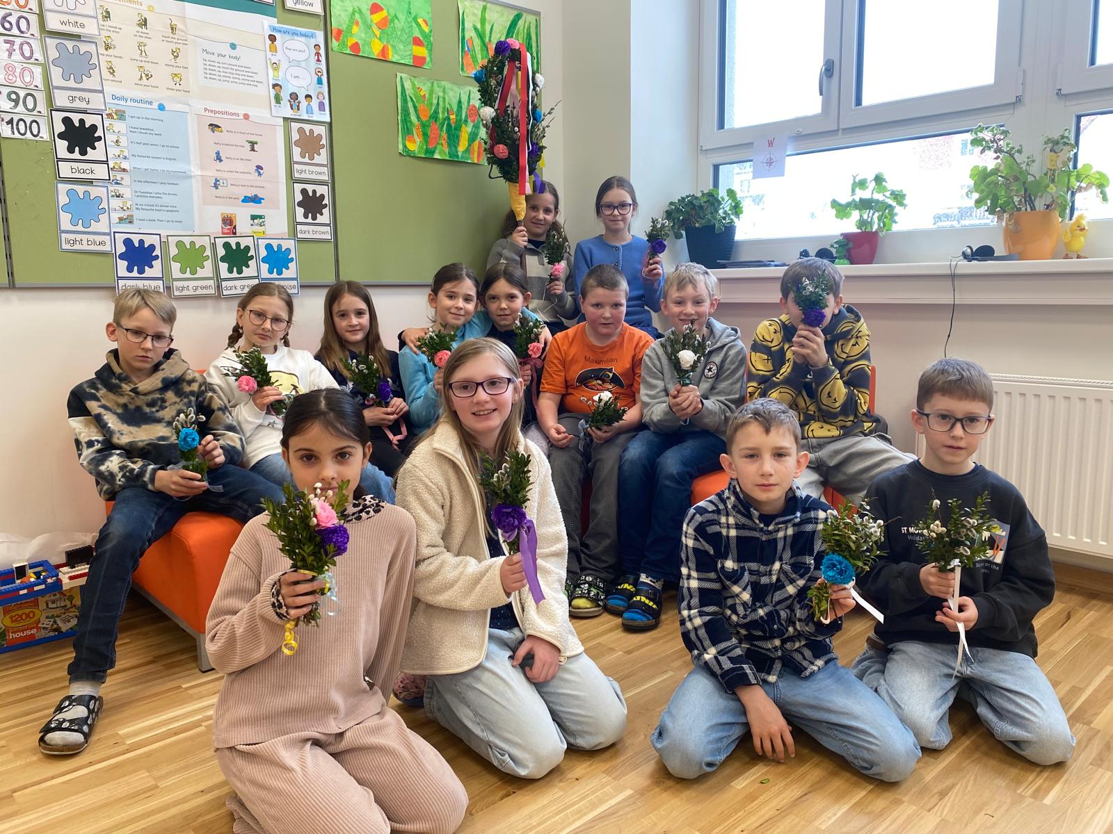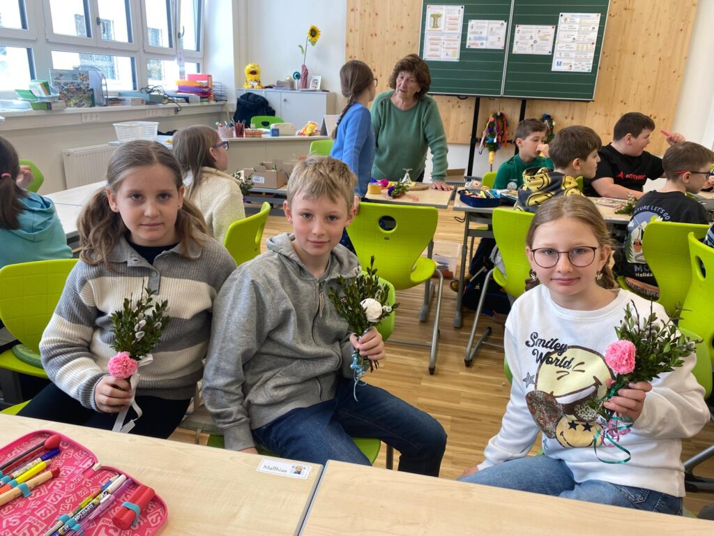 Frau Leodolter besuchte die 3. Volksschulklassen und zeigte den Kindern, wie man Palmbuschen bindet. Mit großer Begeisterung und Freude waren alle bei der Sache und gestalteten ihre eigenen kleinen Palmbuschen. Ein schöner und lehrreicher Vormittag für die Kinder!