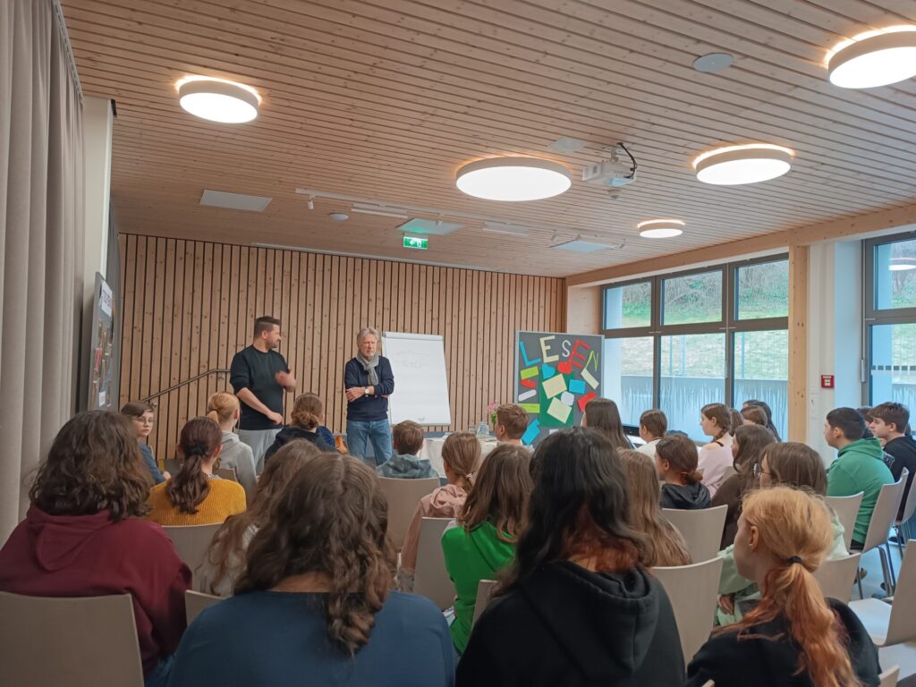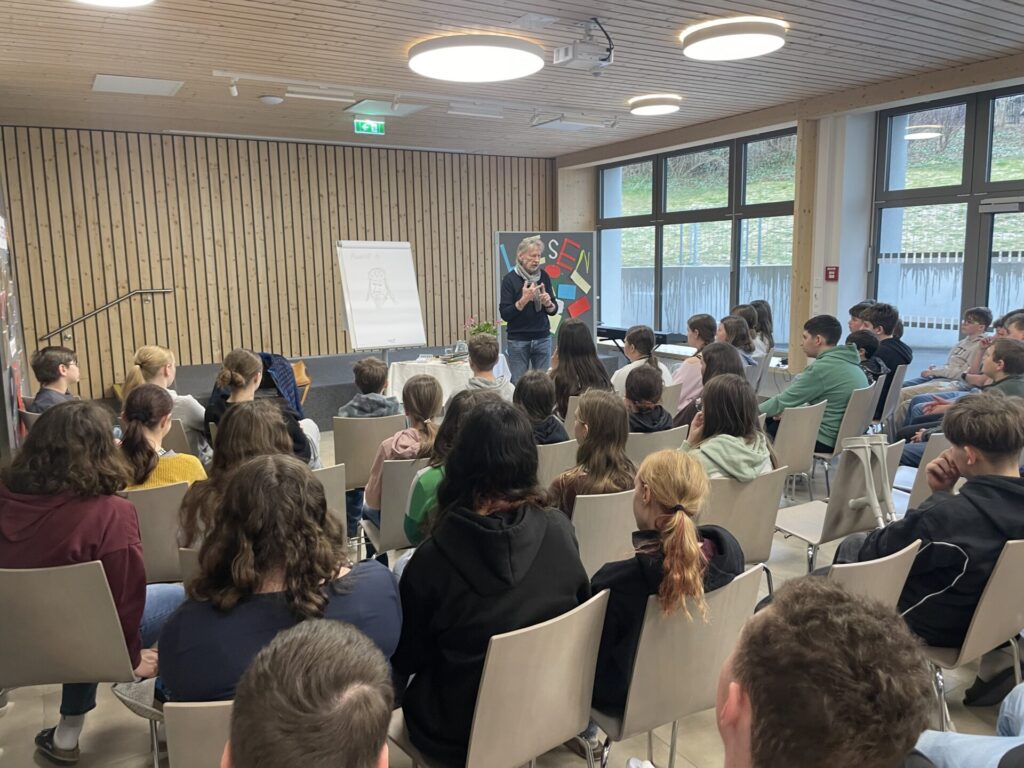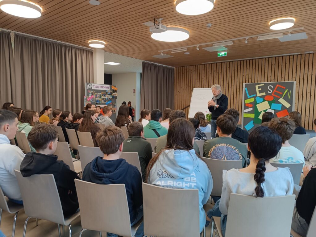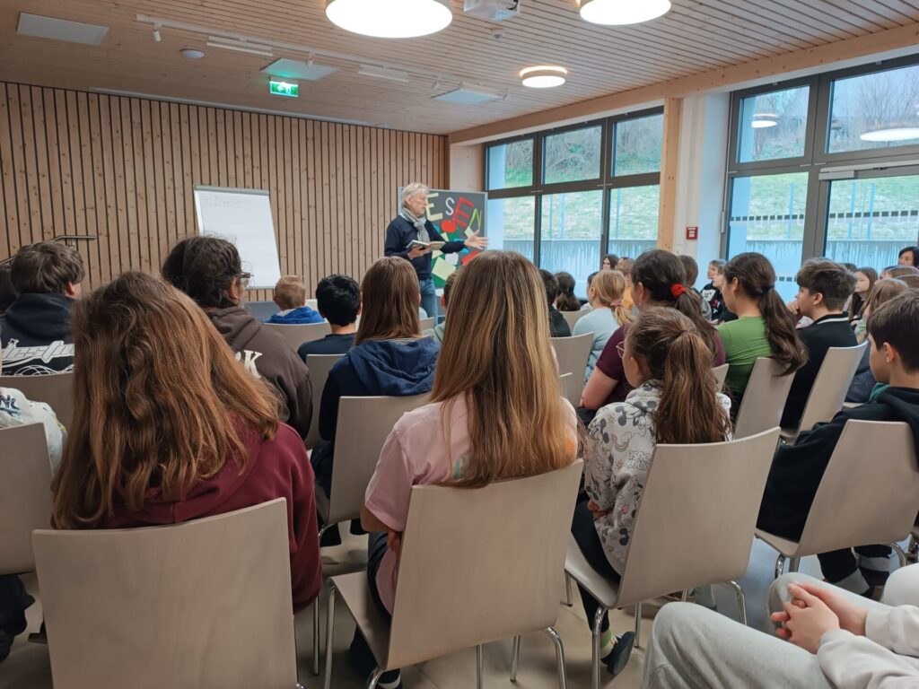 Am Mittwoch, den 8. April 2026 und am Freitag, 10. April 2026 durften der Pflichtschulcluster Mariazell Herrn Franz Sales Sklenitzka willkommen heißen. Der gebürtige Lilienfelder gab den Schüler*innen der Volksschule seinen Bestseller „Drachen haben nichts zu lachen“ zum Besten. Auch die Mittelschüler*innen kamen in den Genuss seiner Bücher wie zum Beispiel „Das Drachenlexikon“. Besonders begeistert waren die Schüler*innen von Herrn Sklenitzkas Zeichenkünsten.