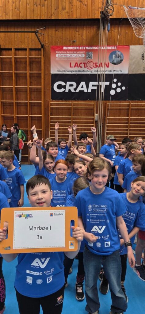 Die stolze Siegerklasse vom ersten Tag in Bruck an der Mur lautet Mariazell 3a! Diese Klasse darf für den Bezirk Bruck Mürzzuschlag zum großen Landesfinale nach Graz auf den Schloßberg fahren und dort ihren Bezirk vertreten. Wir gratulieren unserer 3a Klasse sehr herzlich zu dieser hervorragenden Leistung und drücken für das Landesfinale ganz fest die Daumen. Auch die beiden anderen Klassen unserer Schule, konnten beachtliche Erfolge erzielen. Die 4a Klasse erreichte den tollen 3. Platz und auch die 3b Klassse kann mit ihrem 7. Platz (von insegsamt 14 teilgenommenen Klassen) sehr zufrieden sein.