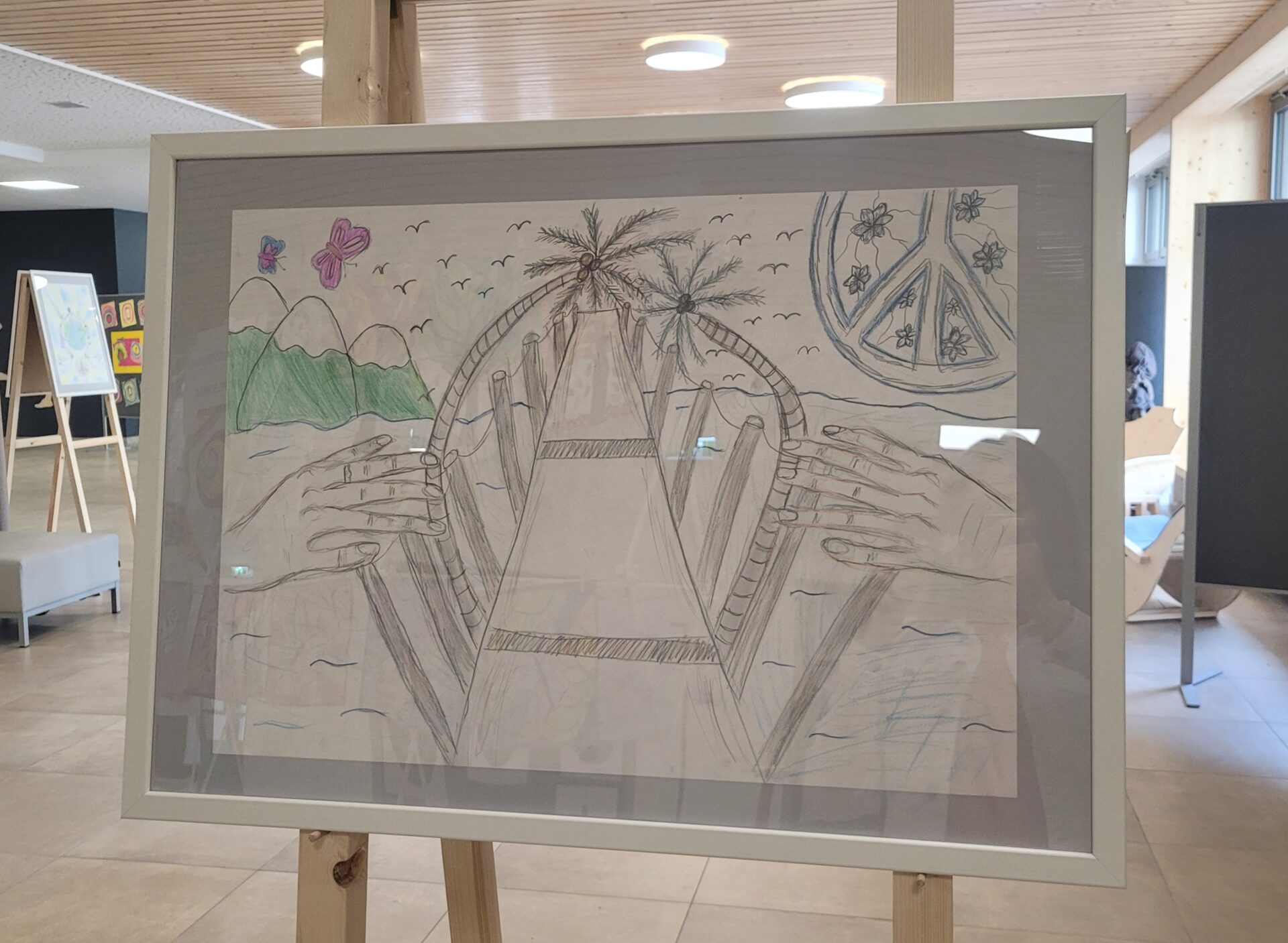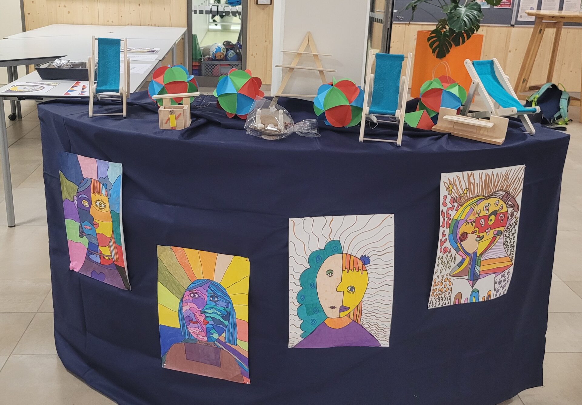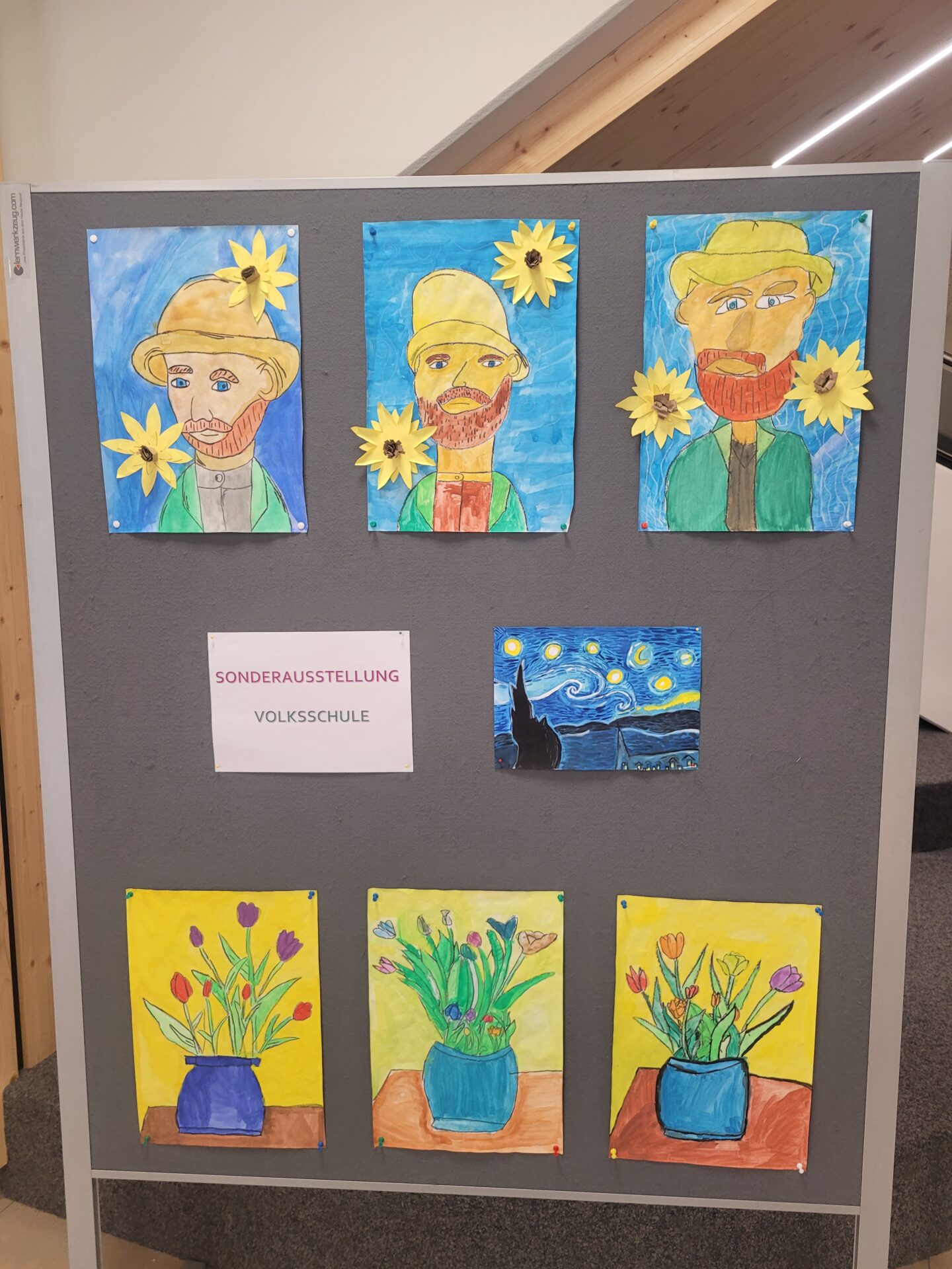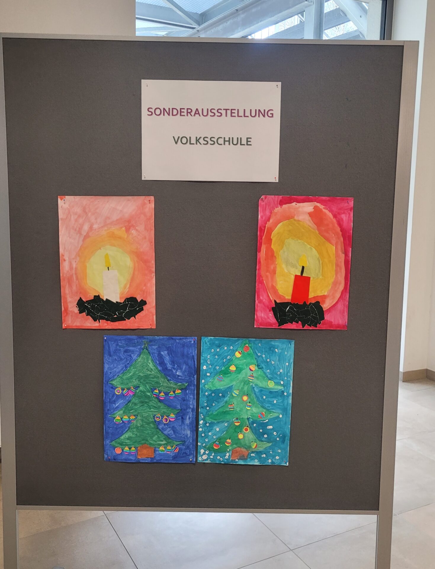 In der gesamten Aula konnte man die Kunstwerke unserer Schülerinnen und Schüler von VS, MS und PTS bewundern. Abstrakte Darstellungen, Tiere, Blumen, Gegenstände, Collagen, Comics, Werkstücke aus Holz, Tonskulpturen, eine Vielzahl an Techniken und Formaten – hier gab es viel zu sehen und zu entdecken.