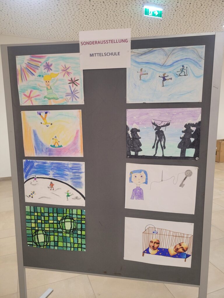 Zahlreiche Zeichnungen konnte man von den Schülerinnen und Schülern der 4. Klassen MS sowohl ersteigern als auch bei der Verlosung gewinnen. Es gab auch ein Schätzspiel, aus welchem Antonia Wallmann als Gewinnerin hervorging. Die lukrierten Einnahmen werden für den Abschlussausflug der 4. Klassen in den Lungau verwendet.